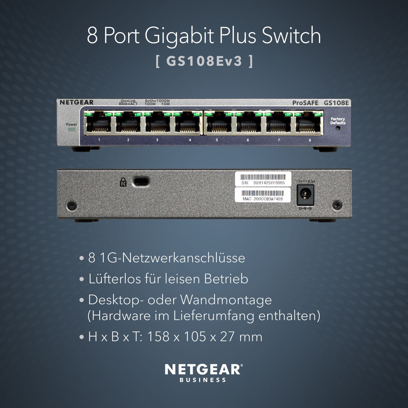 Netgear PLUS GS108EV3 SWITCH Desktop 8 x 10/100/1000