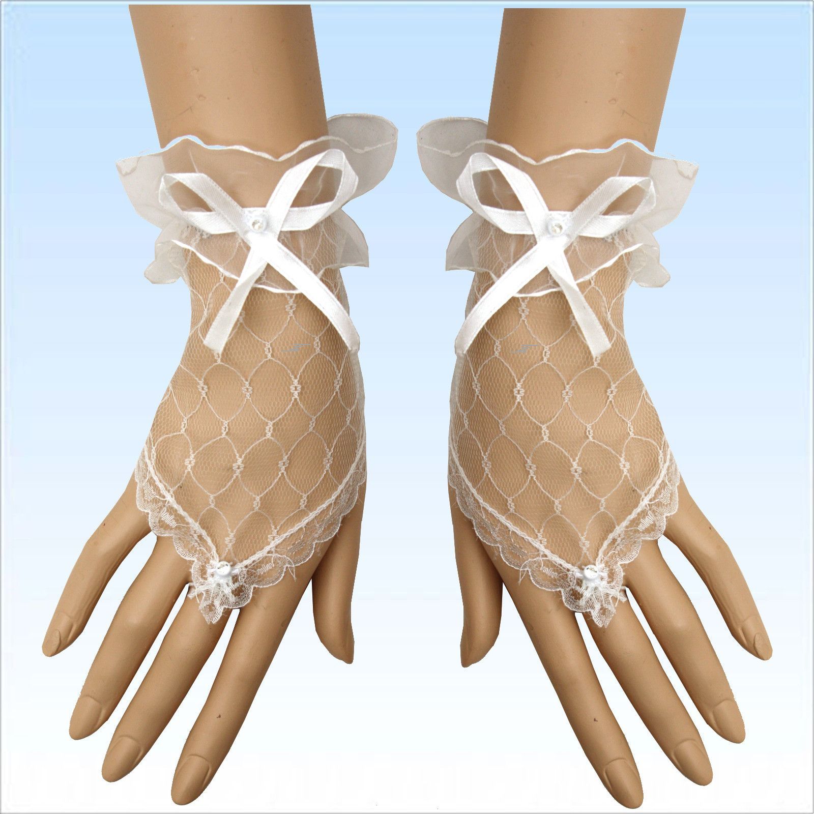 Netzhandschuhe mit Schleife Cremeweiß Fingerlos für Abendgarderobe Kostüme Handschuhe