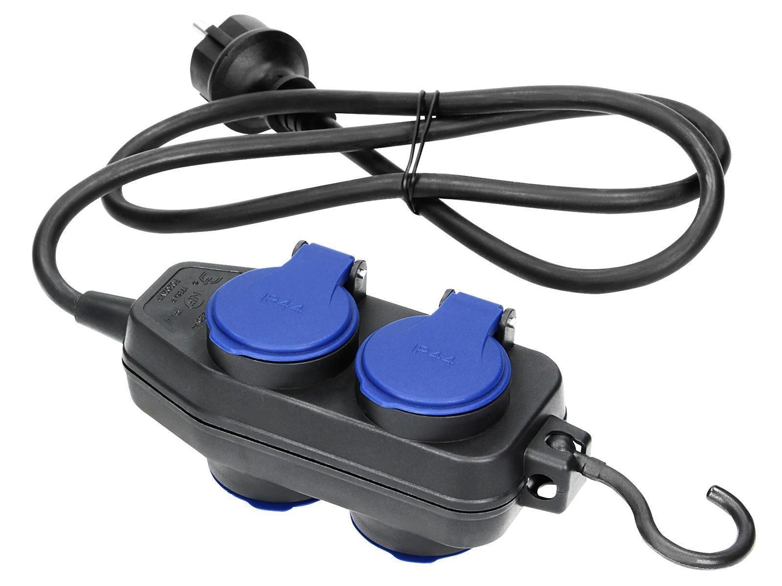 Netzkabel Schutzkontakt-Verlängerung, 4fach, 5m, 3x1,5mm², IP44, schwarz