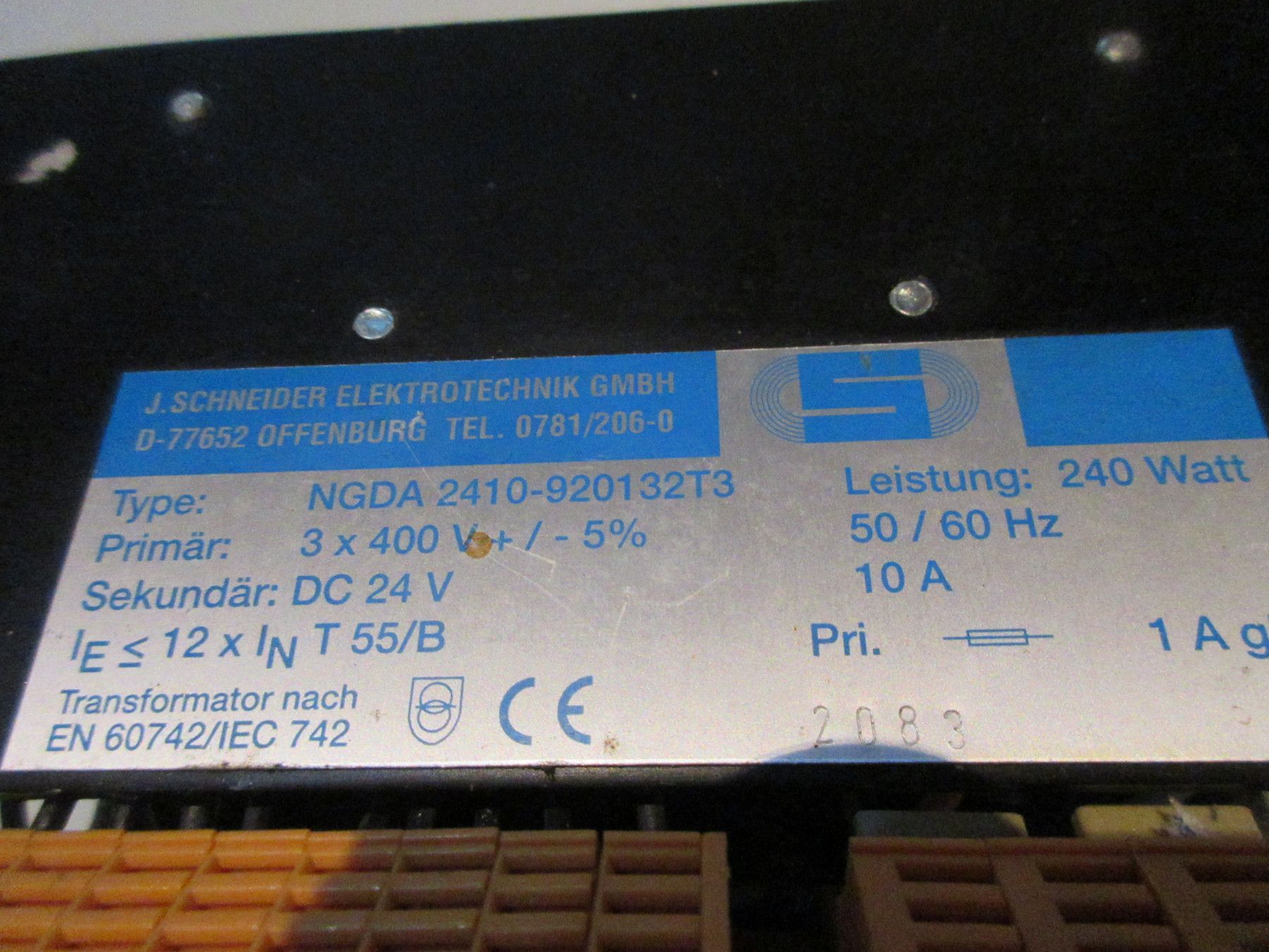 1 Netzteil Fa. J.Schneider,prim. AC400V,sek. DC24V / 10Amp,für Einbau,ohne Gehäuse