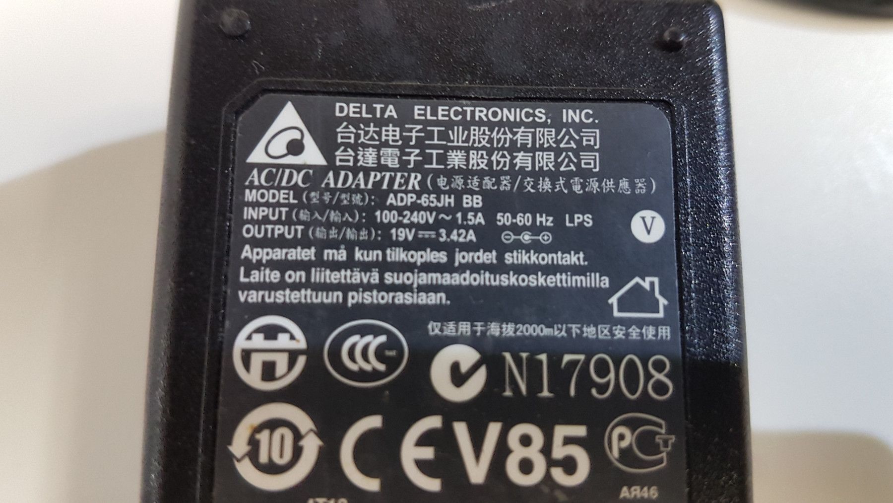 gebraucht, voll funktionstüchtig, original Delta Netzteil Typ: ADP-65HJ BB 19V 3,42A DC Stecker 5,5x2,1mm komplett mit Netzkabel B38