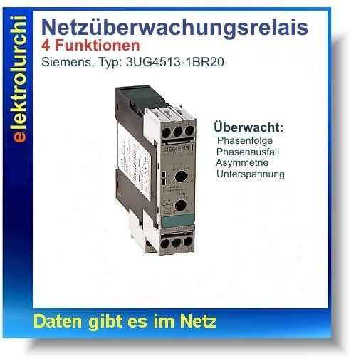 Sie bieten hier auf folgende Artikel NEU 1 Stück Netzüberwachungsrelais Siemens 3UG4513-1BR20 Sirius, 4 Funktionen 690 V AC Beschreibung Die SIRIUS 3UG4 Überwachungsrelais ermöglichen einen optimalen Schutz für Maschinen und Anlagen, fest installiert zum Schutz vor Über- oder Unterspannung oder für