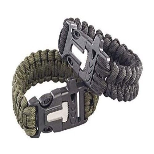 NEU 2er Set Survival Armbänder Seil Pfeife Feuerstahl Messer für Camping Outdoor