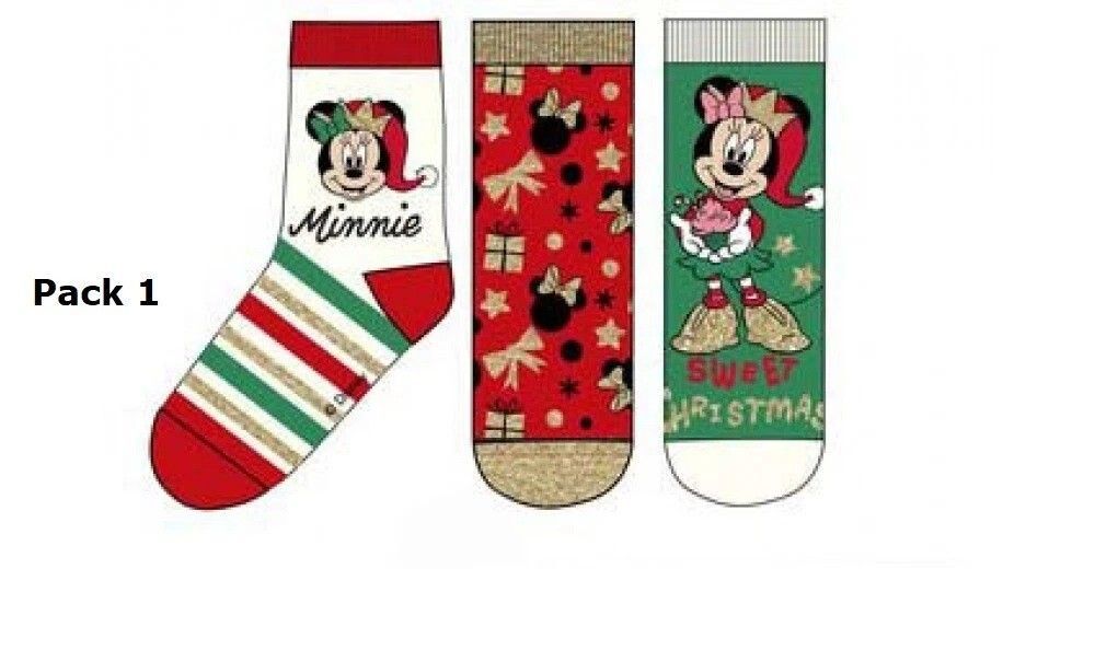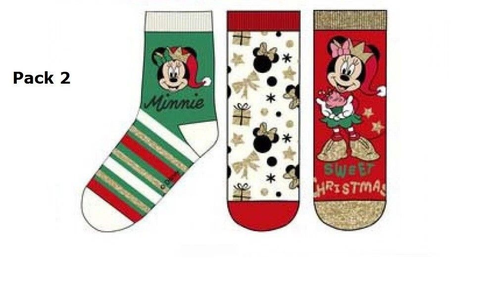 Neu 3 Paar Disney Minnie & Mickey Maus Weihnachtssocken Kinder Strümpfe HU0687 Xmas