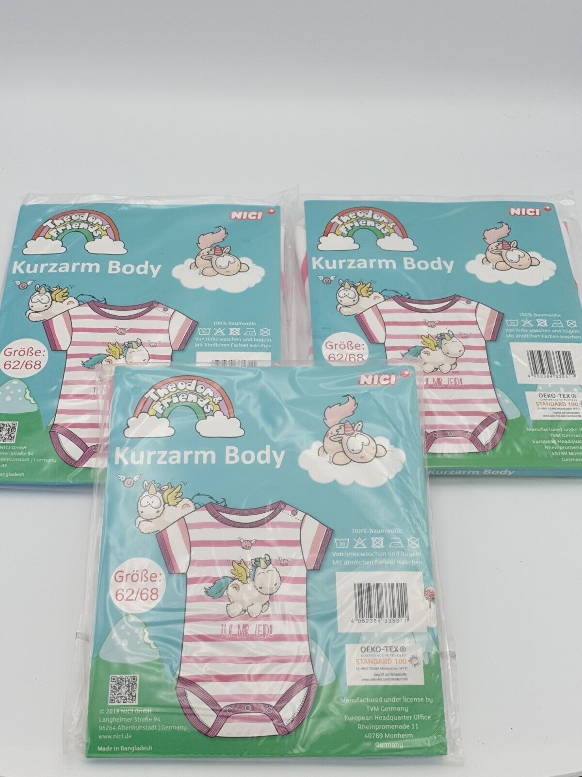 My first NICI Mädchen Body 3 x Mädchen Body kurzarm Neuware NICI Lizenzprodukt 100% Baumwolle erhältlich in Größe 62 68 und 74 80 Viele weitere Babyartikel finden Sie in meinem Hood Shop.