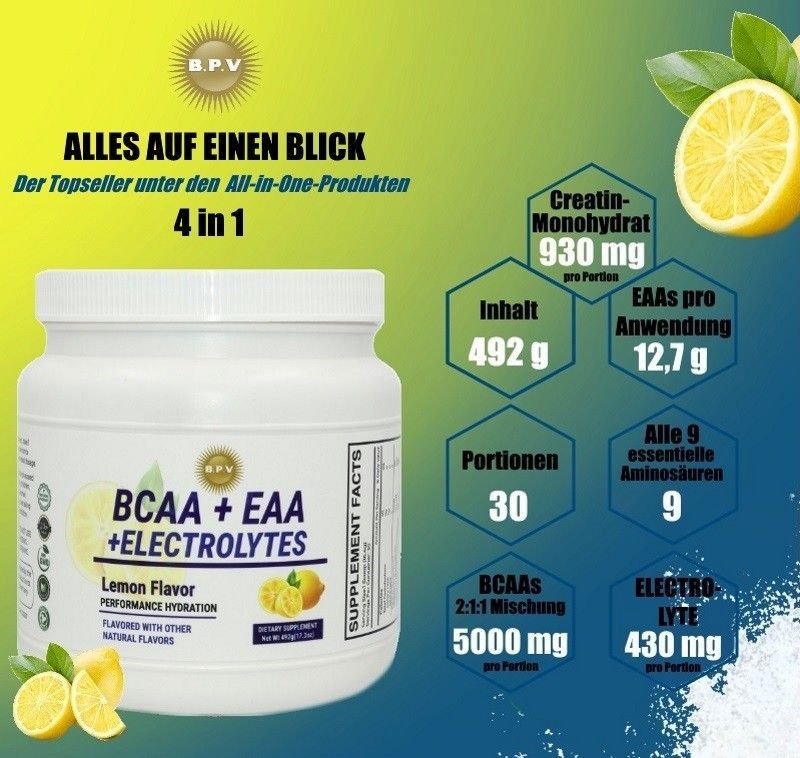 Neu 4 In 1- Bcaa + Eaa + Electrolyte + Creatin | Aminosäuren |Der Perfekte Game Chang