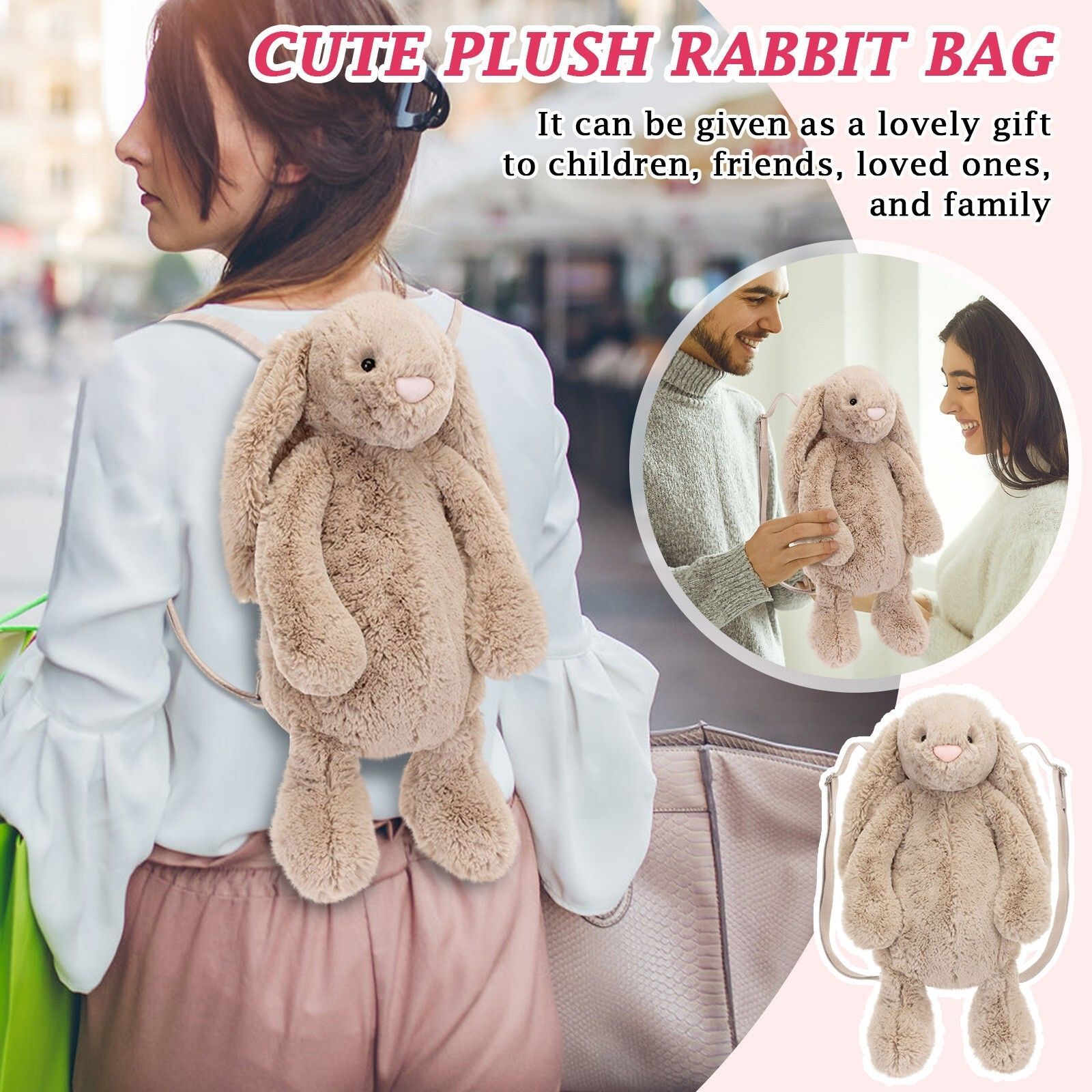 NEU 40CM Bashful Bunny Beige Rucksack, Weiches und Kuscheliges Pluschtier, Jelly Cat