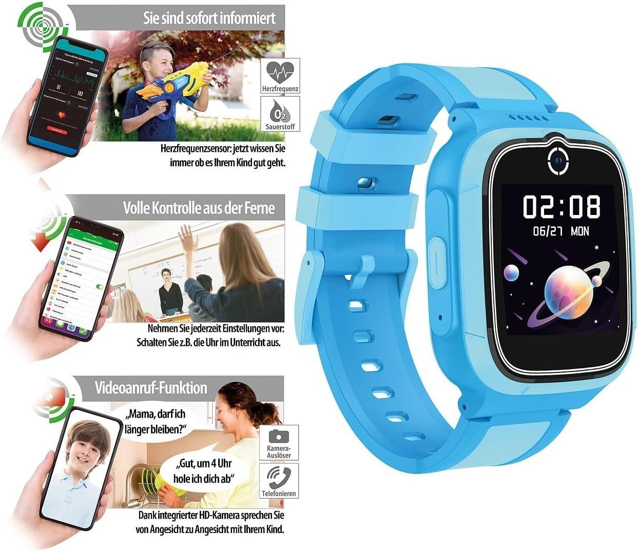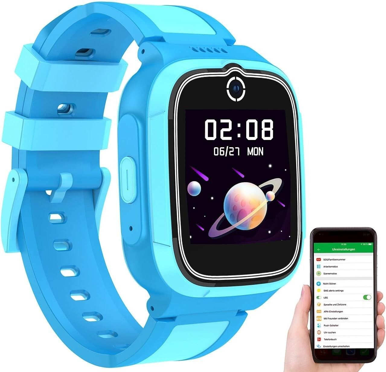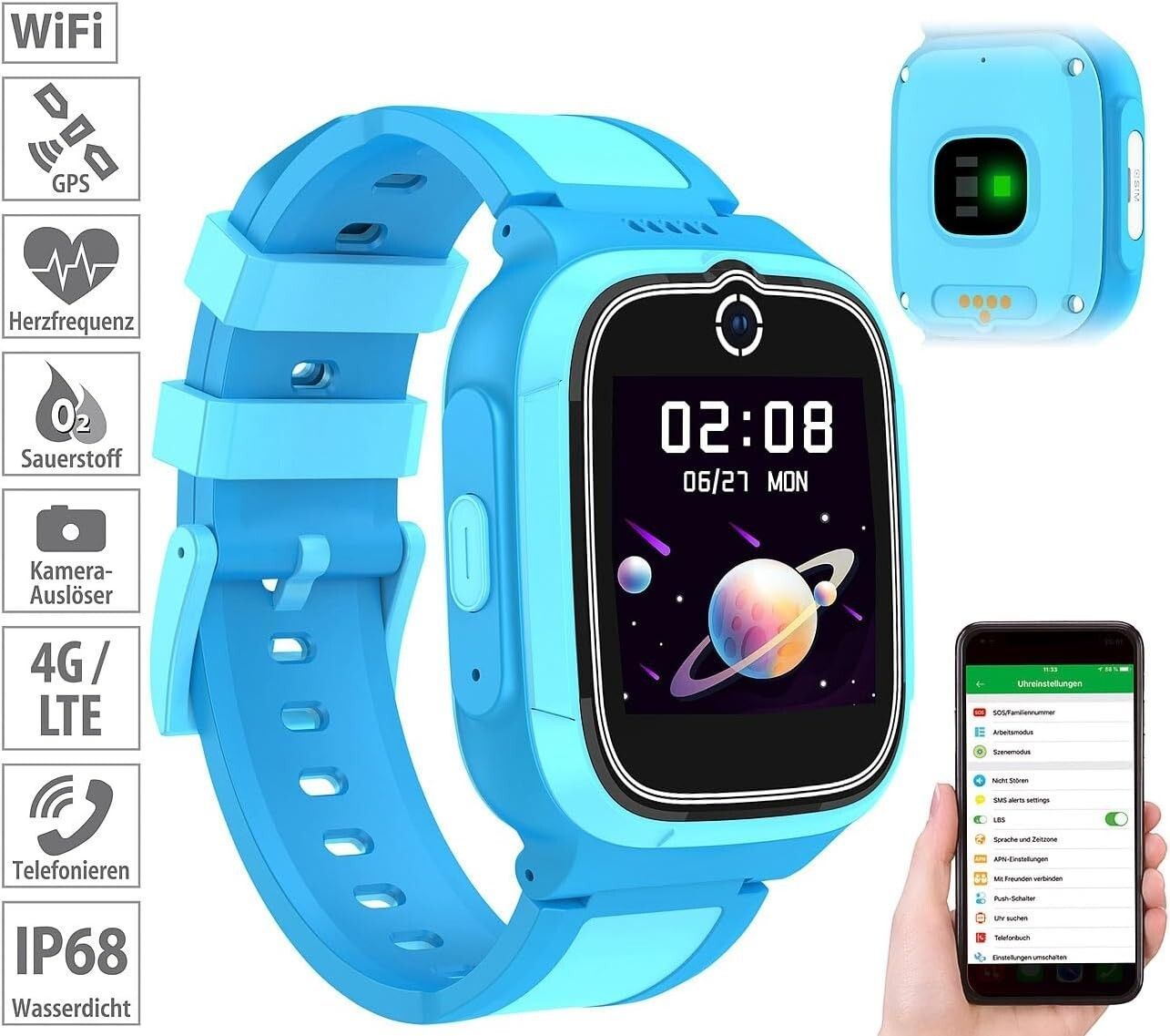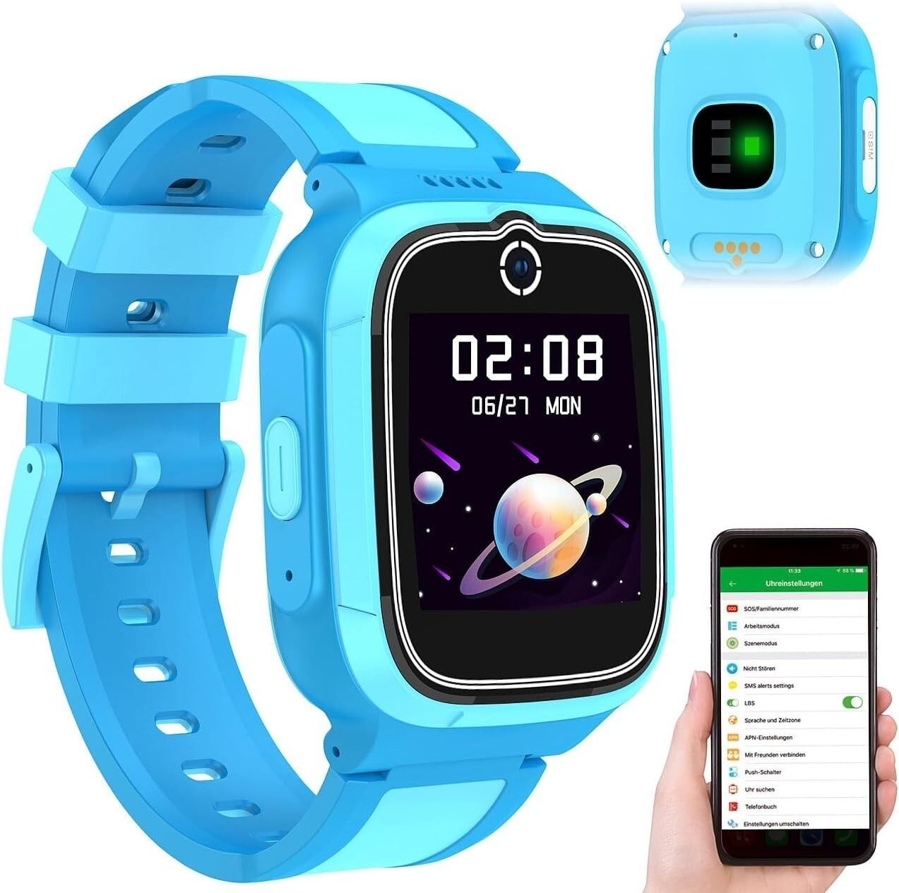 NEU 4G Smartwatch GPS Telefon Videoanruf Gorillaglas Wasserdicht blau für Kinder