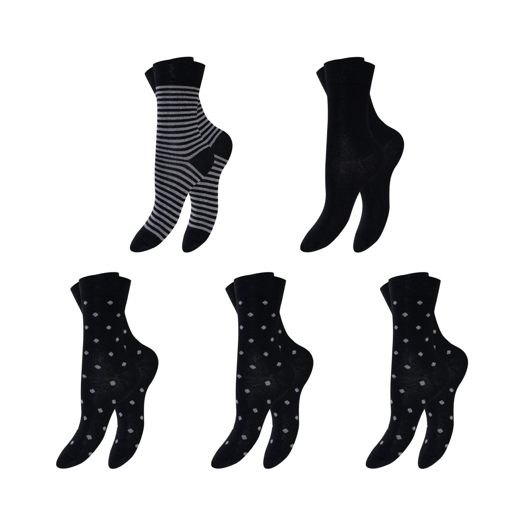 Neu 5 paar Damensocken Damen Mädchen Strümpfe Socken gepunktet, geringelt, uni 62135