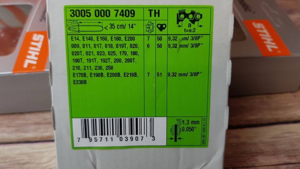 NEU OVP ORIGINAL STIHL 7409 Stihl Schwert 35 cm 1,3 3 8 P + 3x PS Sägeketten Technische Daten Allgemein passend für Stihl Kettensägen von Typs: MS: 009, 011, 017, 018, 019T, 020, 020T, 021, 023, 025, 170, 180, 190T, 191T, 192T, 200, 200T, 201, 210, 211, 230, 231, 241, 250, 251. Lieferumfang 1x Stihl... Mehr