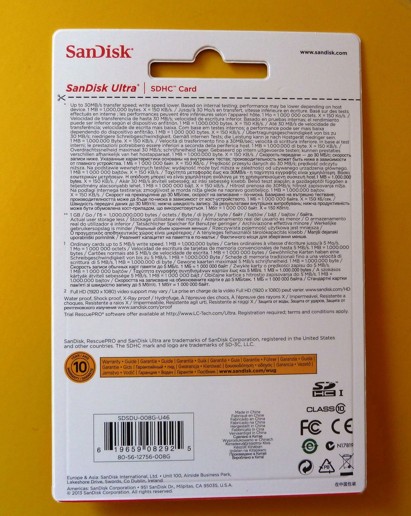SanDisk NEU: 8GB SanDisk Ultra UHS-I SDHC 30MB/ s Secure Digital (SD) 8 GB SDSDU-008G-U46