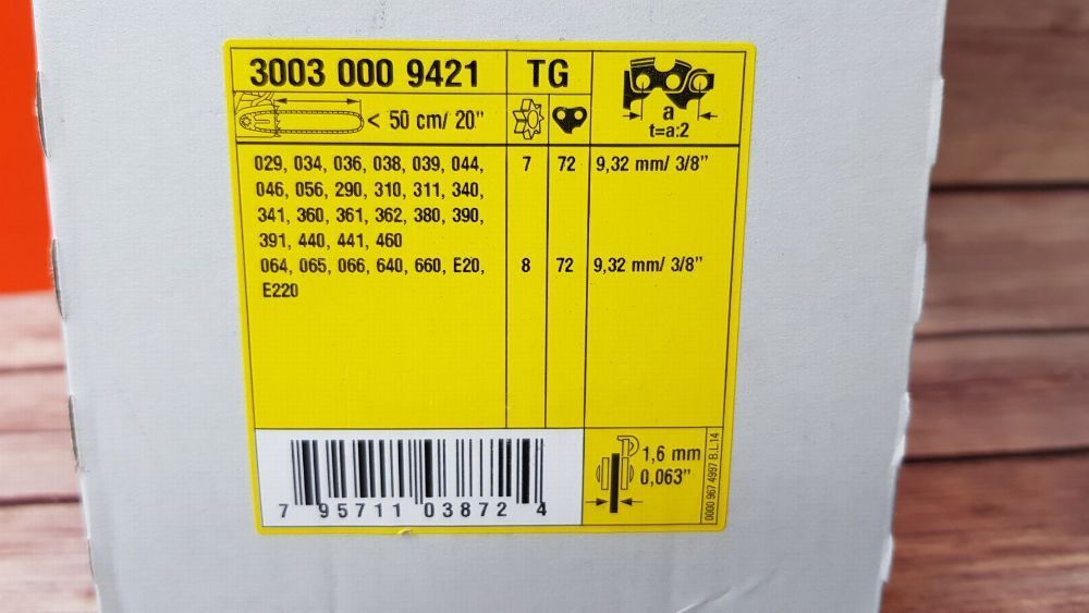 NEU OVP ORIGINAL 9421 Stihl Schwert 50 cm 1,6 mm 3 8 + 2x RS Sägeketten Technische Daten Allgemein passend für Stihl Kettensägen von Typs: MS: 029, 034, 036, 038, 039, 044, 046, 056, 290, 310, 311, 340, 341, 360, 361, 362, 380, 390, 391, 440, 441, 460, 461, 660, 661. Lieferumfang 1x 30030009421 Stih... Mehr