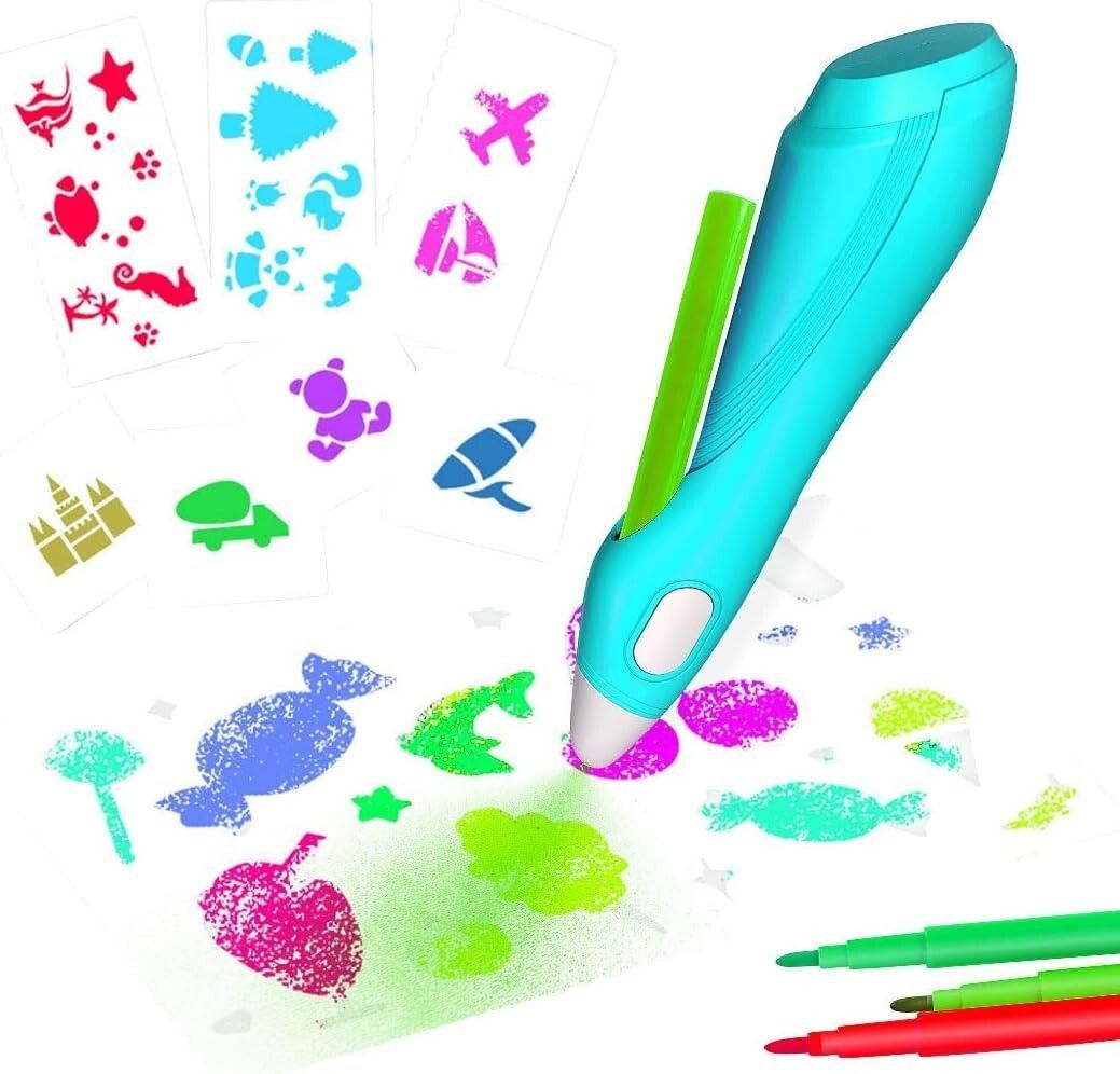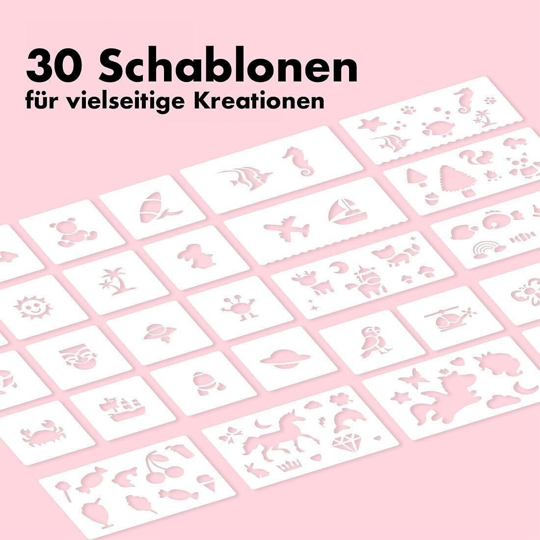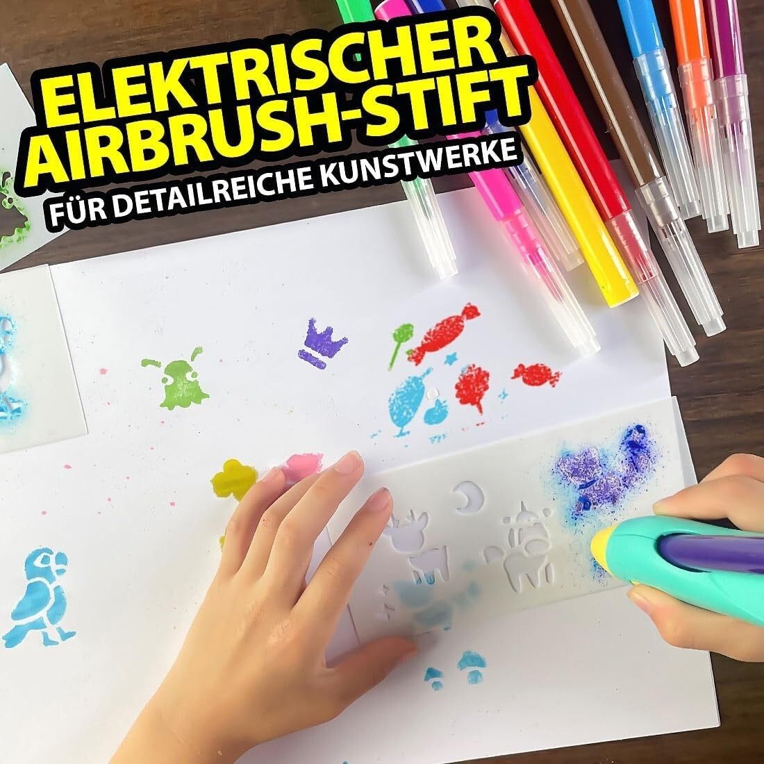 infactory NEU Airbrush Farbspritzpistole elektrisch 12 Farben 30 Schablonen USB für Kinder