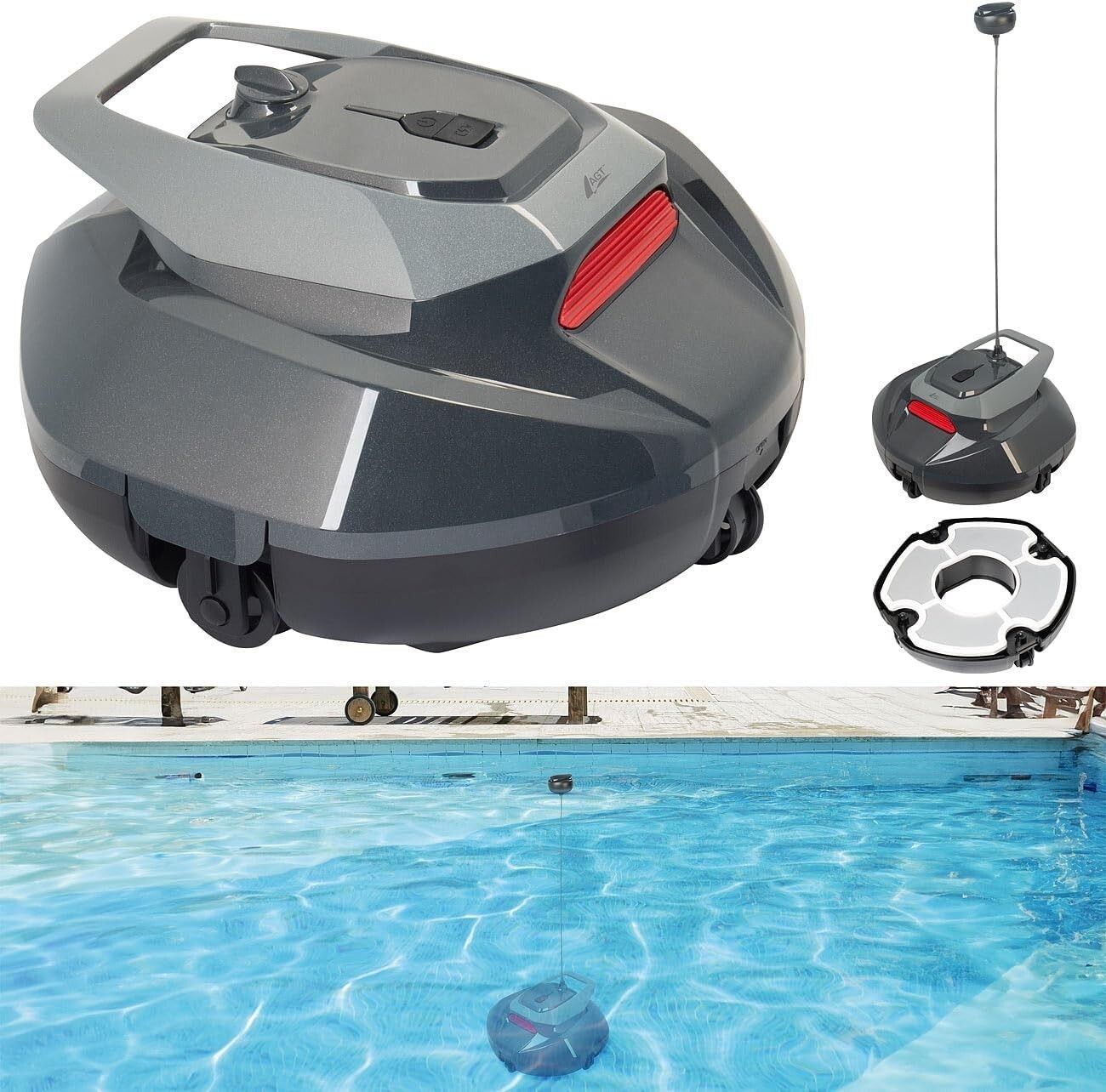 NEU Akku Poolreiniger Roboter kabellos 2 Bürsten für Pool Schwimmbecken Boden