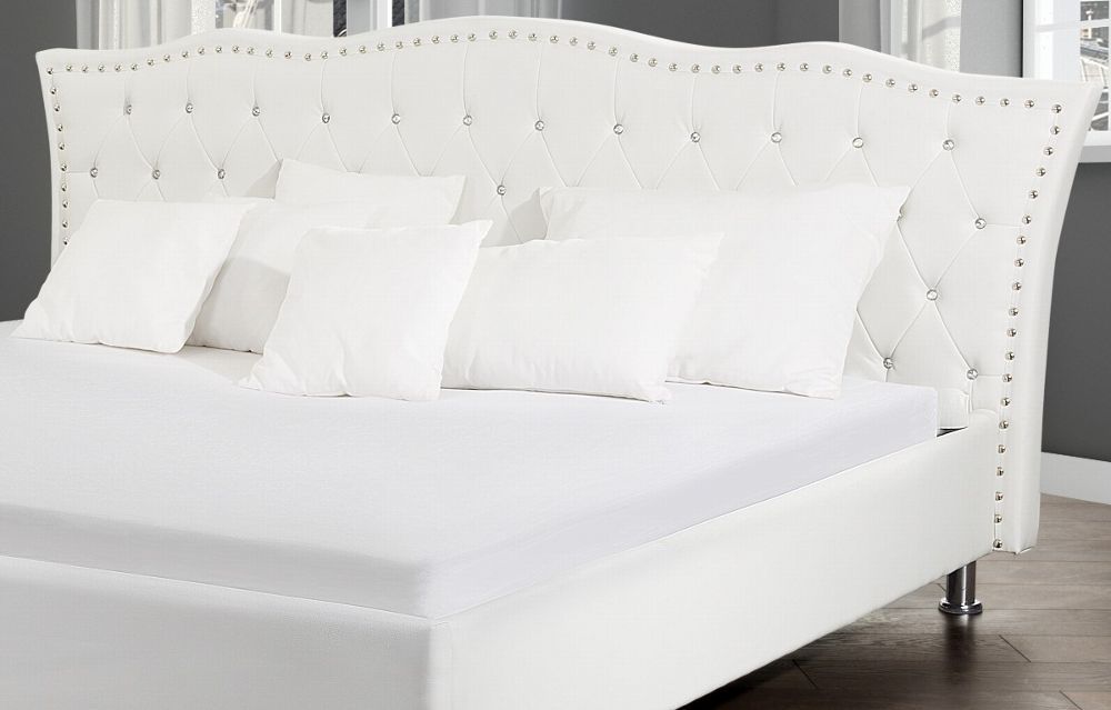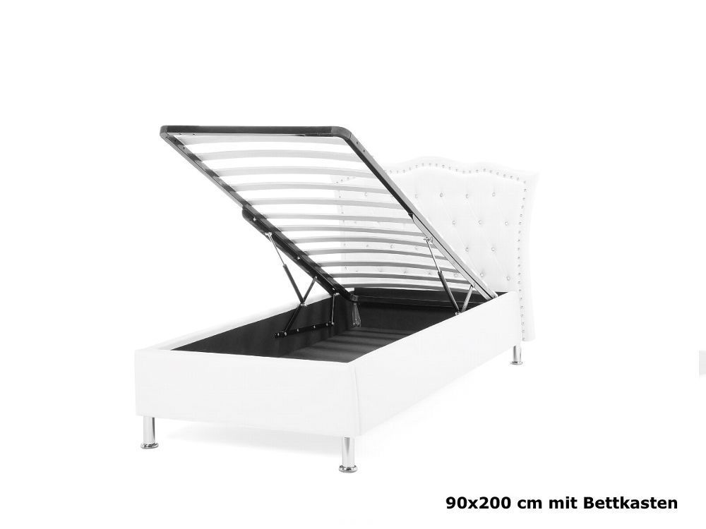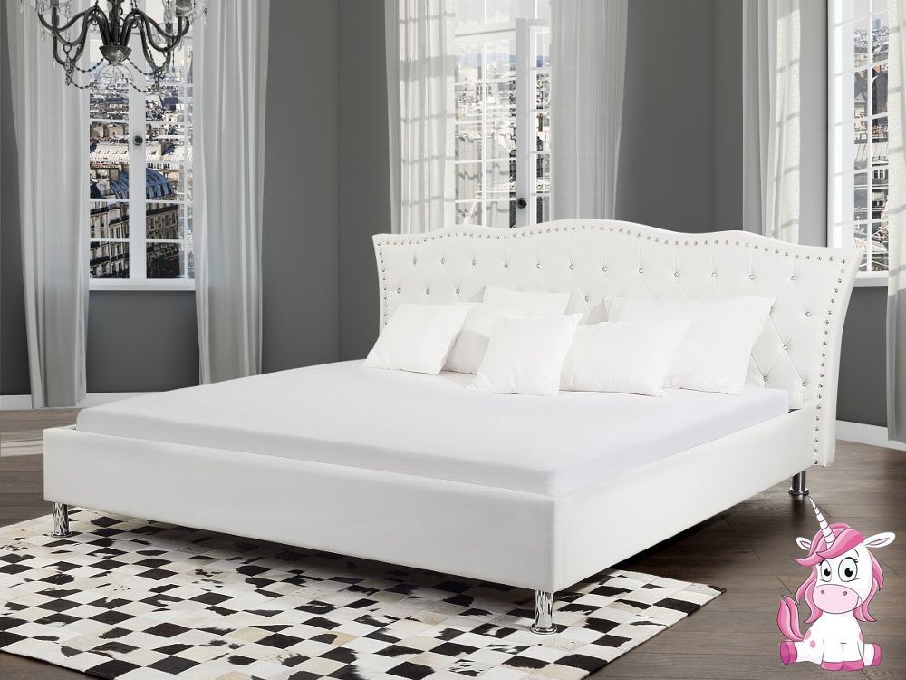 NEU Barock Polsterbett Unicorn Lederbett Leder Bett weiss mit Strasssteine Lattenrost