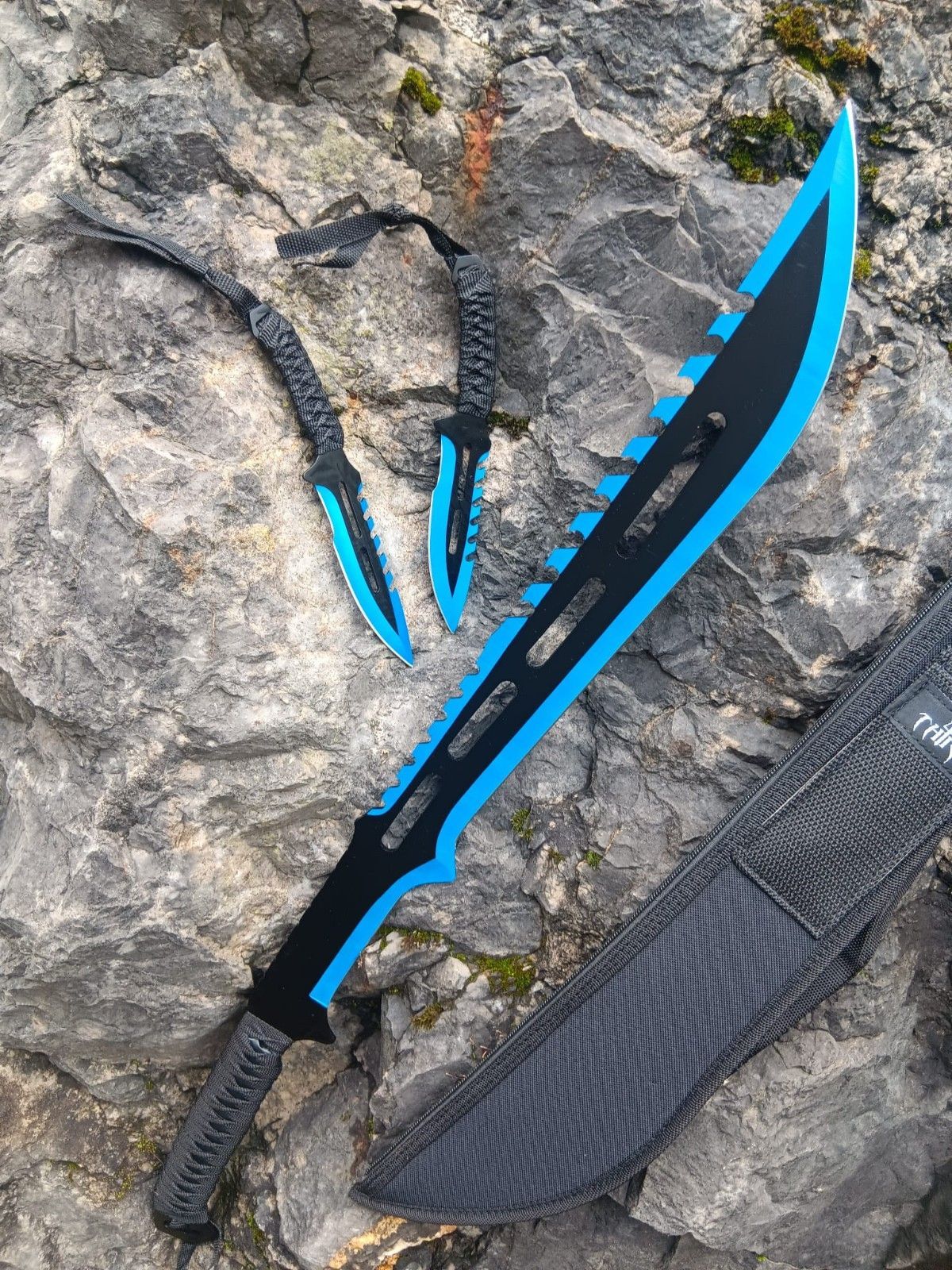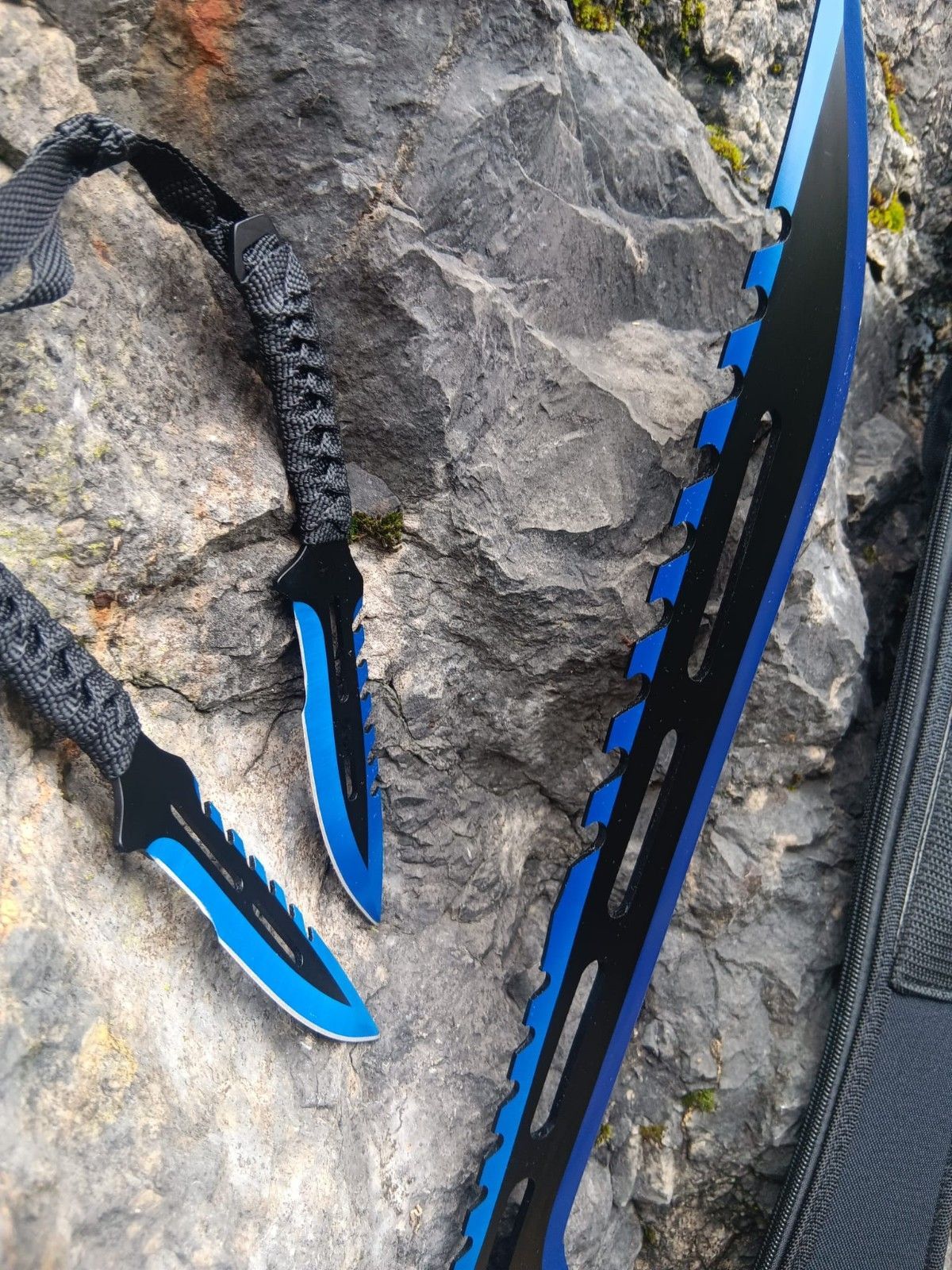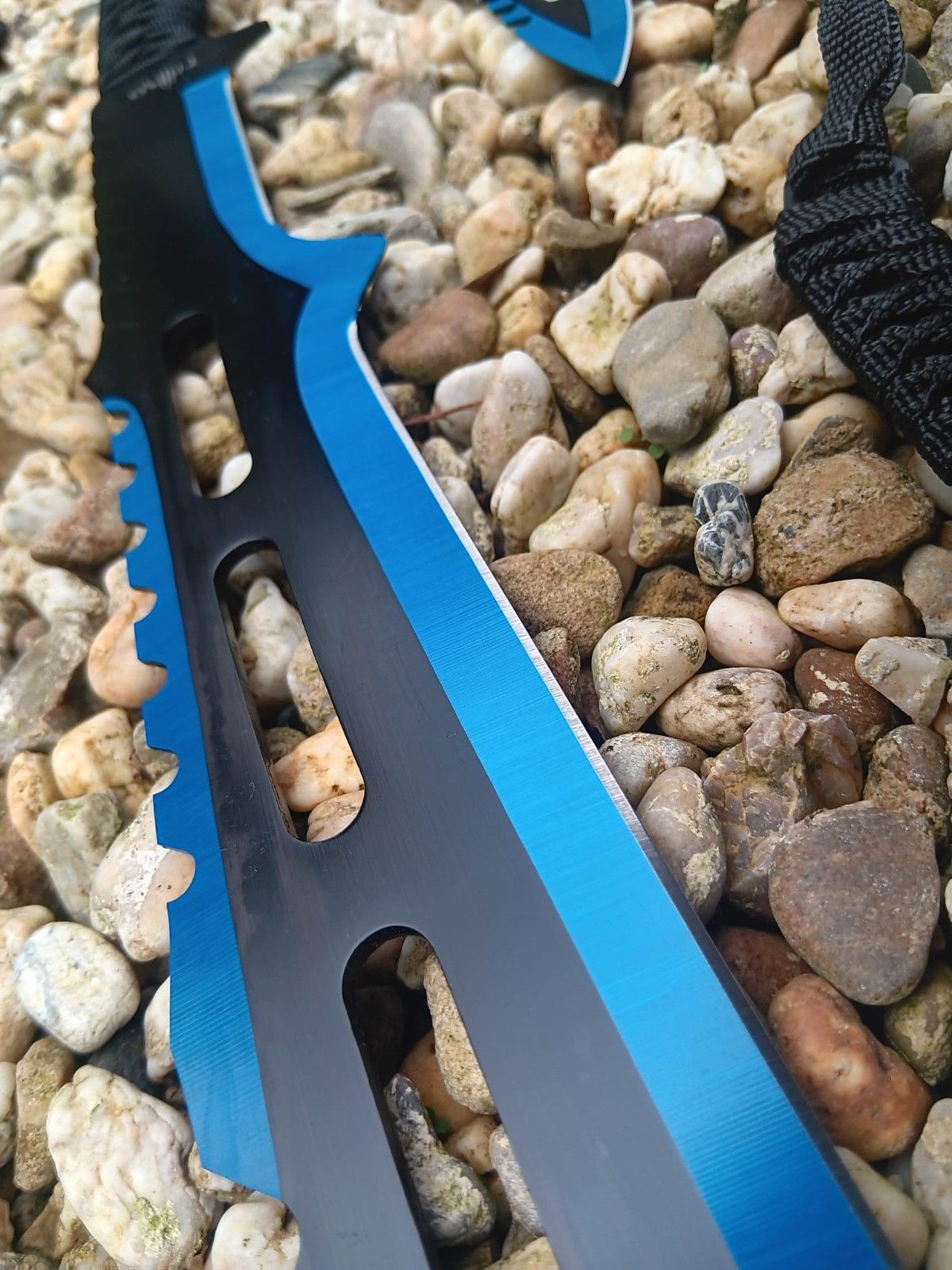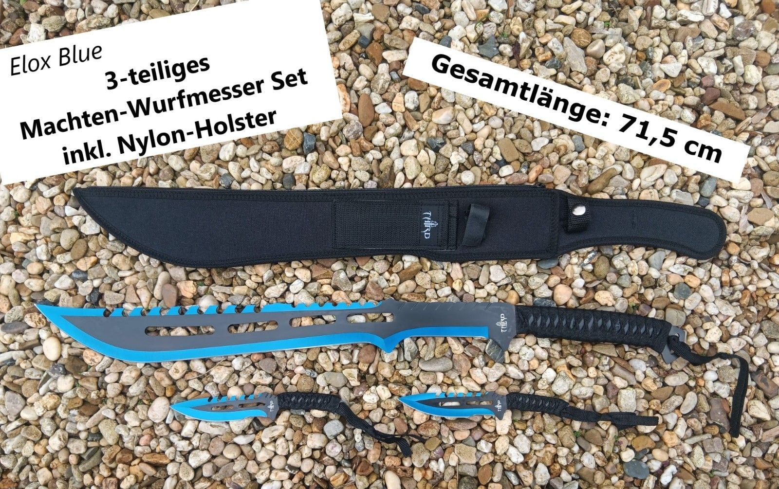 NEU blau schwarzes Macheten + Wurfmesser Set Elox Blue Kunai für Outdoor Wildnis