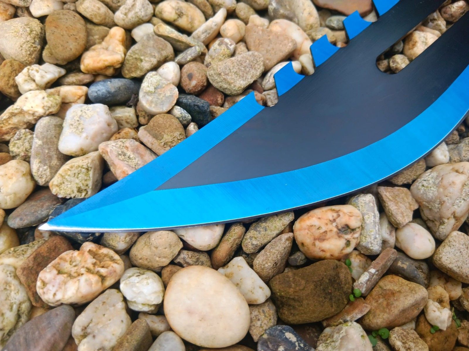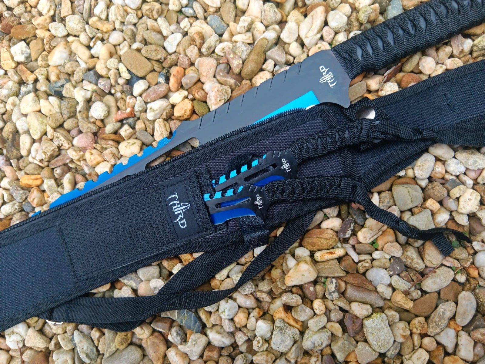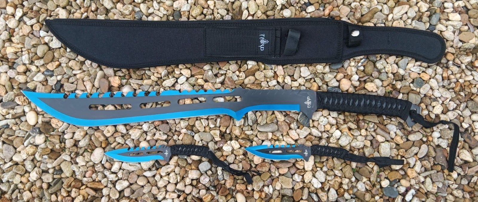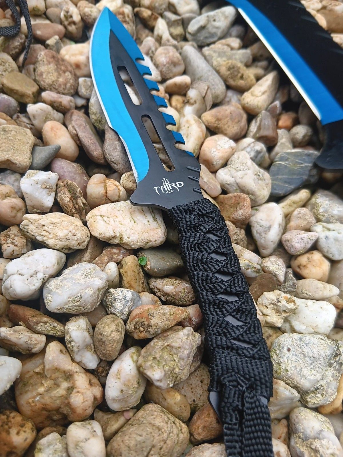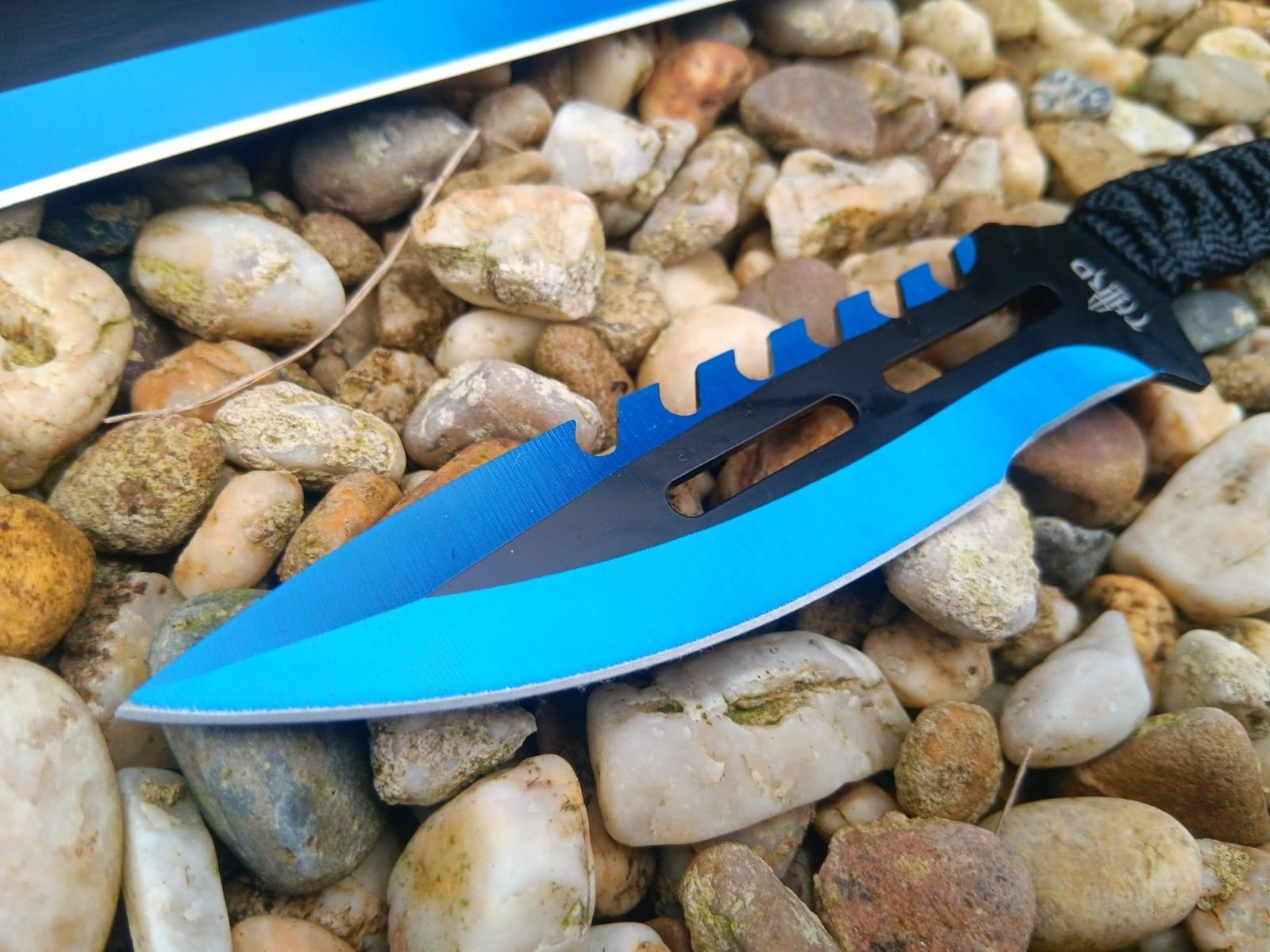 NEU blau schwarzes Macheten + Wurfmesser Set Elox Blue Kunai für Outdoor Wildnis