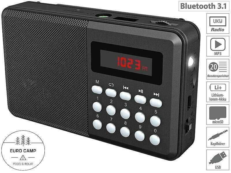 Auvisio NEU Bluetooth Taschen Radio mp3 Player mit Display für USB micro SD Karte Akku