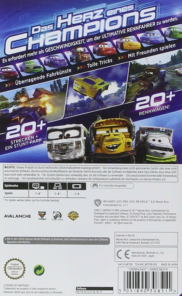 Nintendo, NEU Cars 3 für Nintendo Switch Spiel Game Key Download Code 24h Email New Eshop