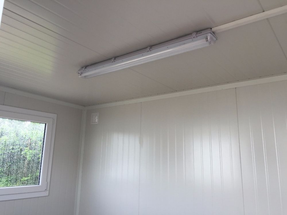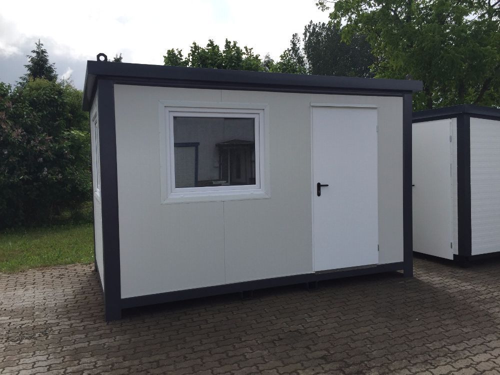 Bürocontainer 4,00 x 2,40 Meter, 2,70 Meter hoch. -Wände u. Dach Sandwichelemente 8 cm Isolierung. - 2 Fenster Dreh Kipp (Doppelverglasung) - Wärmegedämmtes Sandwichprofil für geringen Energieverlust - Hörmann Stahlblech Außentür - Komplette Elektroinstallation nach EG Richtlinien - Steckdosen 230V