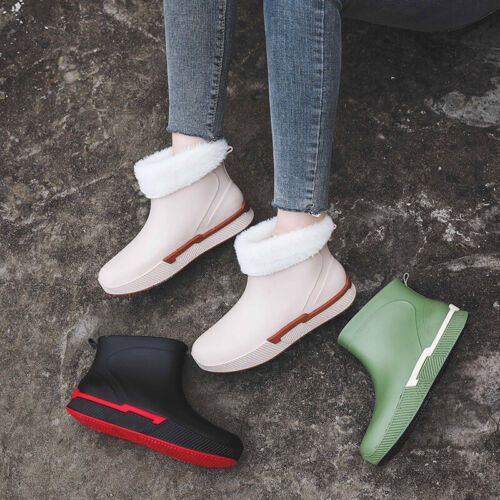 Neu Damen/ Damen Regenstiefel kurze Rohre Gummischuhe Vlies warm PVC N1