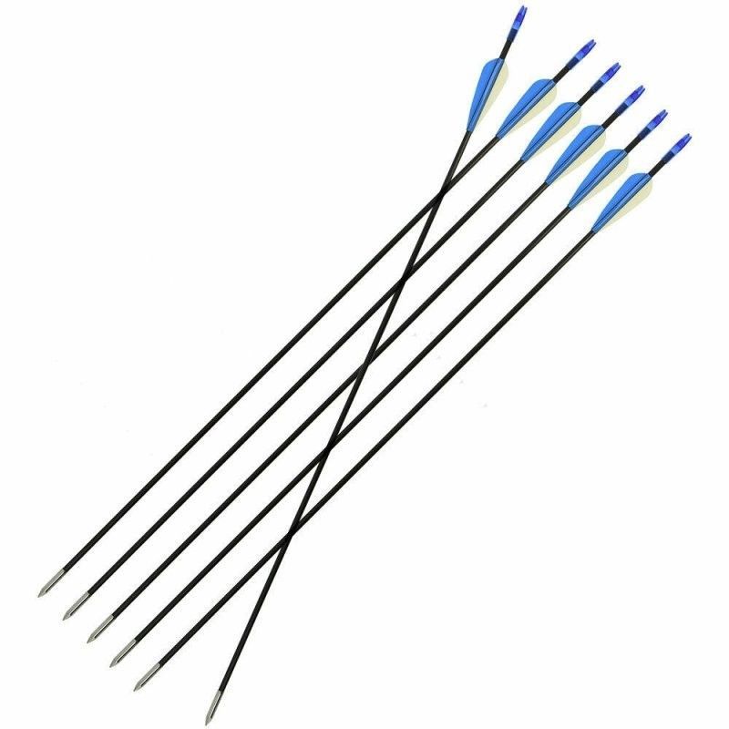 Fiberglas Pfeile für Recurvebogen / Sportbögen / Compoundbögen gewünschte Menge bitte auswählen! Material: Fiberglas Pfeillänge: 26" (66 cm) Außendurchmesser: 6 mm Gewicht: ca. 30 g Befiederung: 3" Vanes Spitze: Pressspitze Schaftfarbe: blau Nocke: Kunststoffnocke Befiederung?blau Unverbindliche Preisempfehlung des Herstellers: 4,90 € pro Pfeil, hier ab 3,49€ pro Pfeil inkl. gratis DE Versand