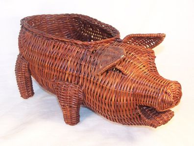 Rattan Korb - " Schwein " - Germany 60er Jahre * *