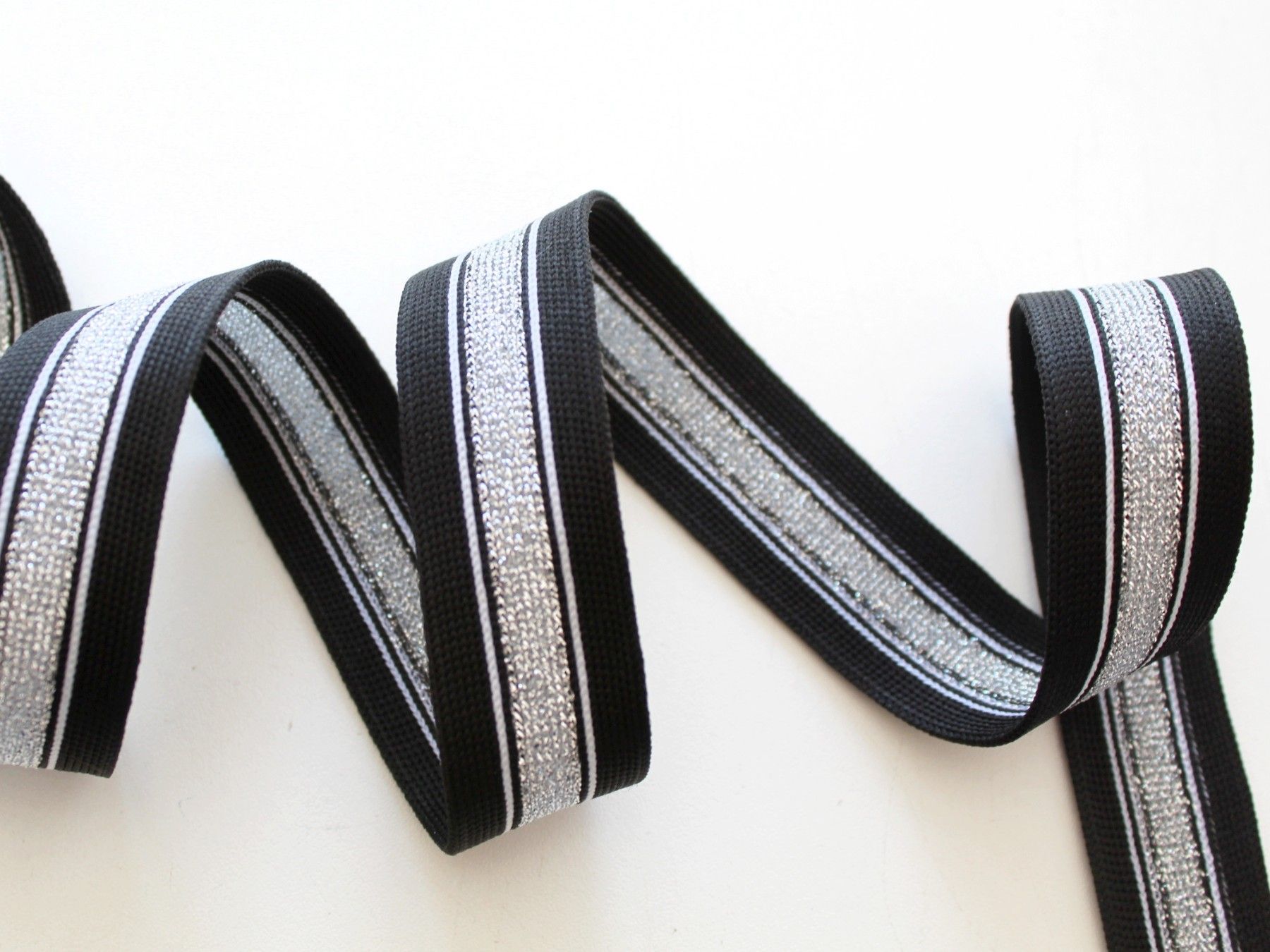 NEU Galonband "schwarz-silber", Galonstreifen, Jerseyband, 3 cm breit