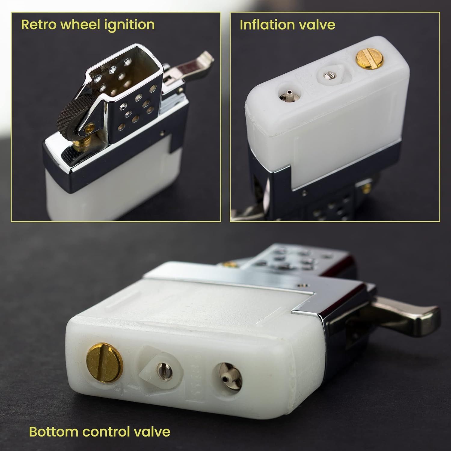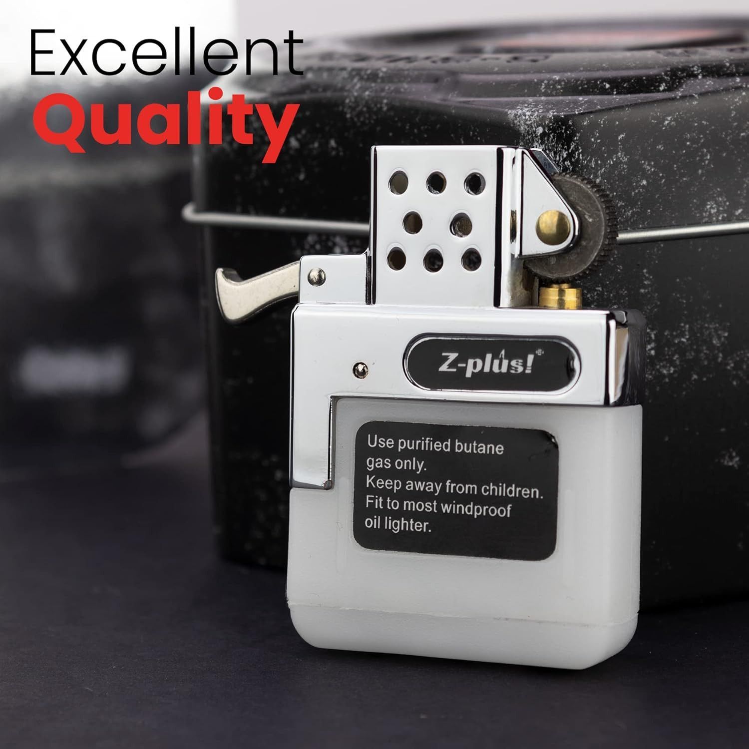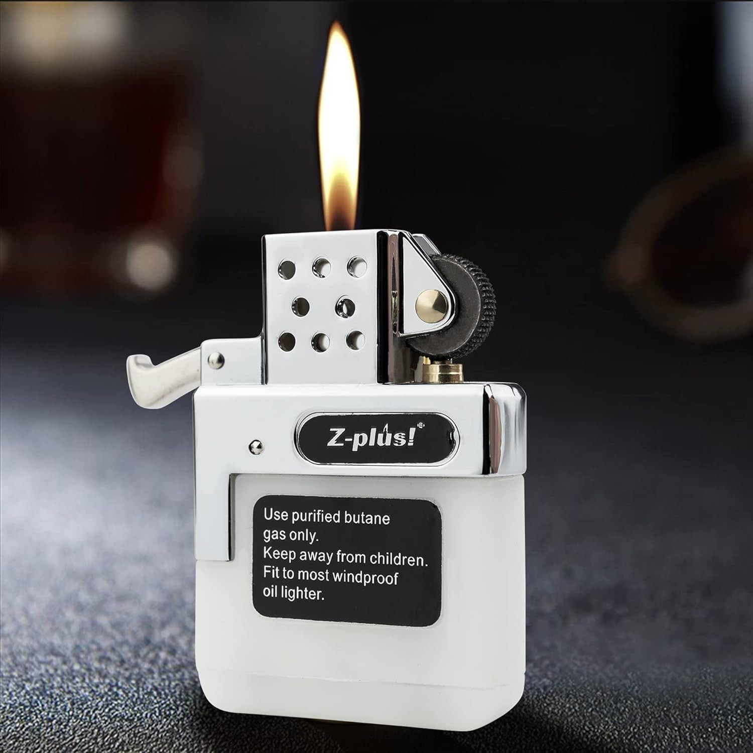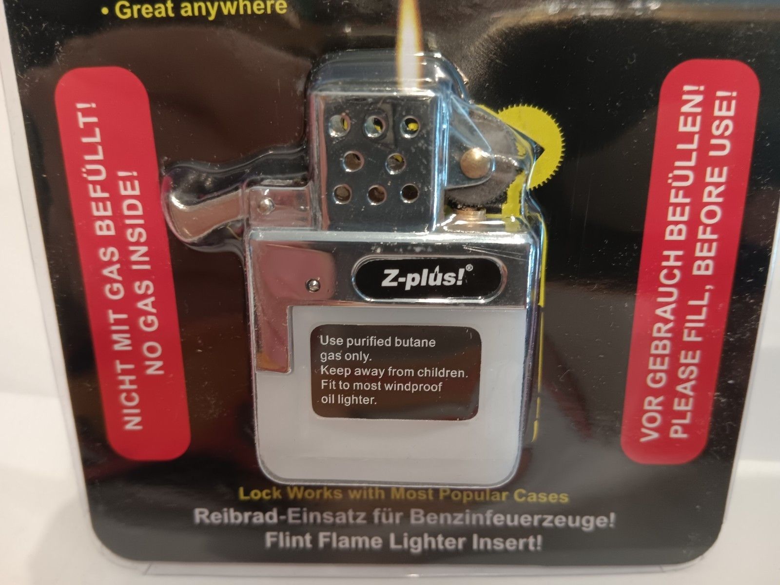 Macht aus einem Benzinfeuerzeug ein Gasfeuerzeug. Einfach den Benzineinsatz austauschen.