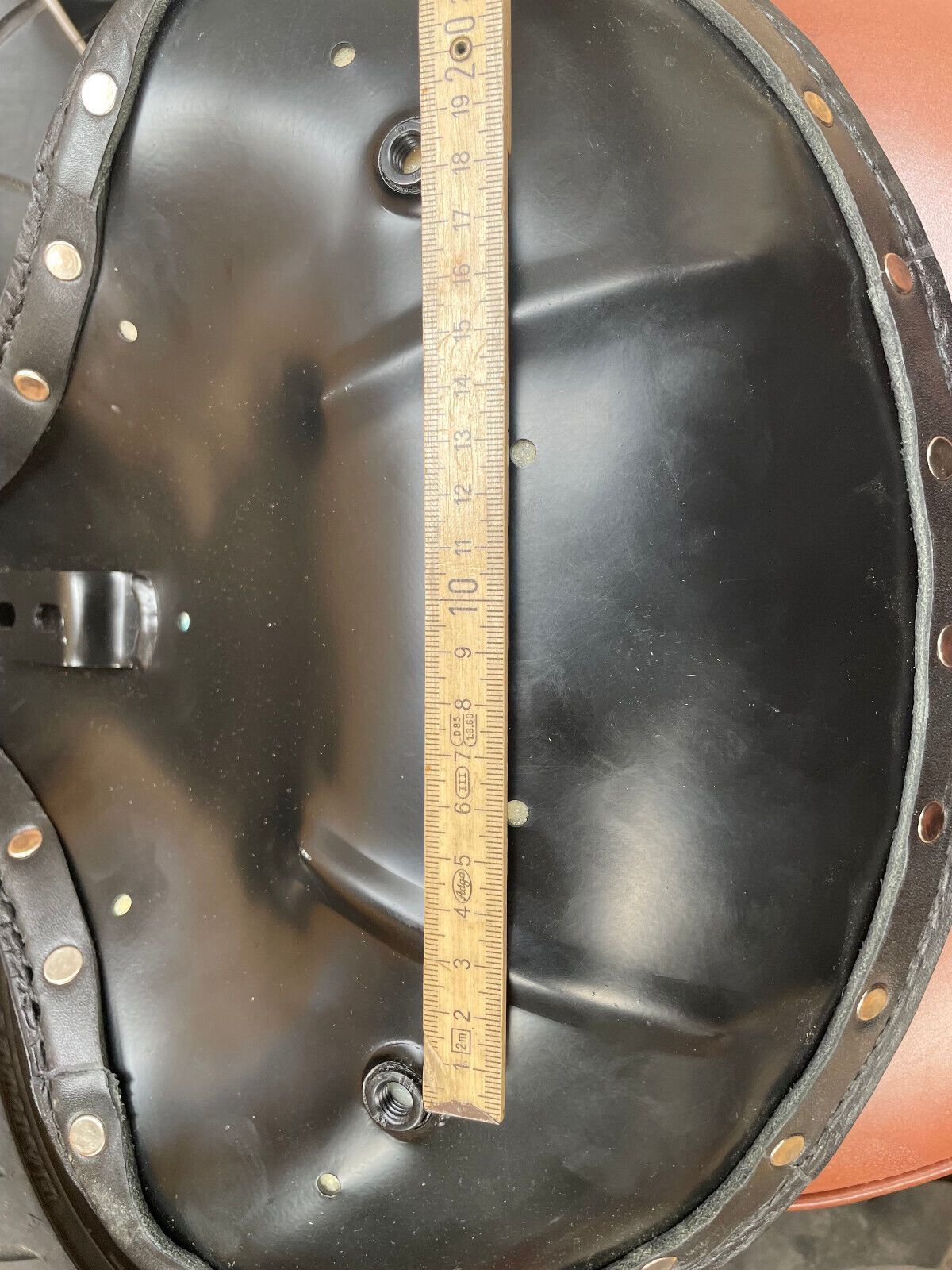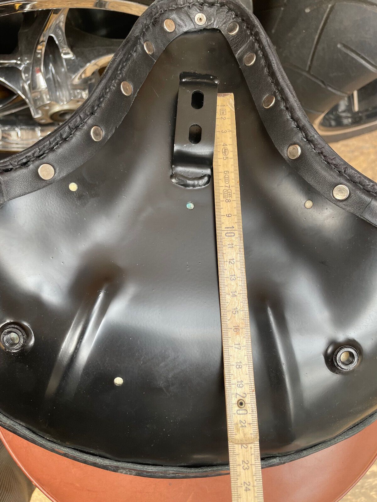 Neuer Echtleder Schwedensattel Harley Solositz mit sehr schöner leichter Patina (vom Hersteller so gewollt, seht euch die Bilder an) Ideal für Bobberumbauten da er 30% kleiner ist als der originale Harleysitz!! Die Maße für die Sattelaufnahme entnehmt bitte den Bildern! Beim Kauf bitte teilt uns,bei