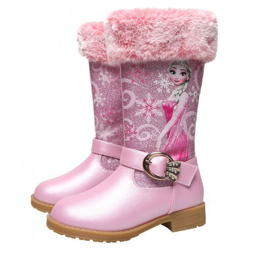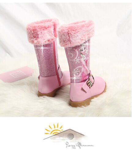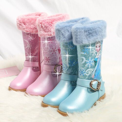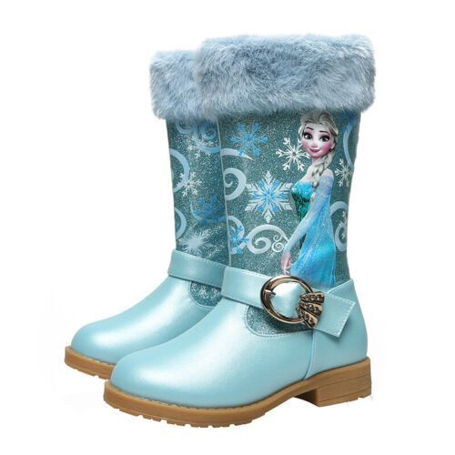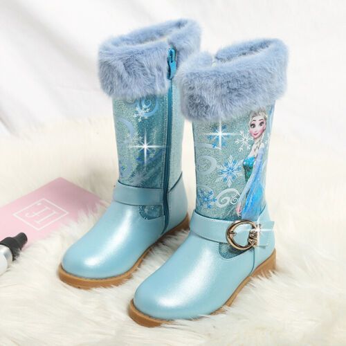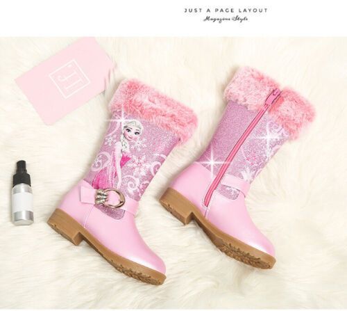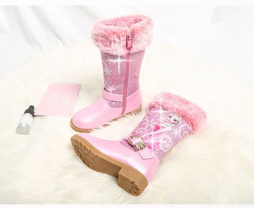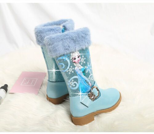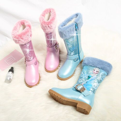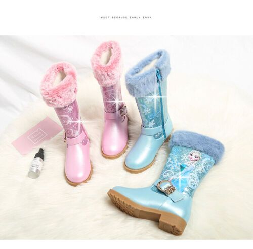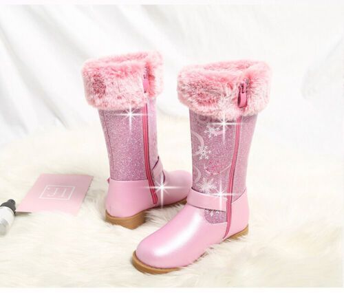 Neu Herbst Winter Kinder Madchen Elsa Prinzessin Paillette PU Hohe Stiefel