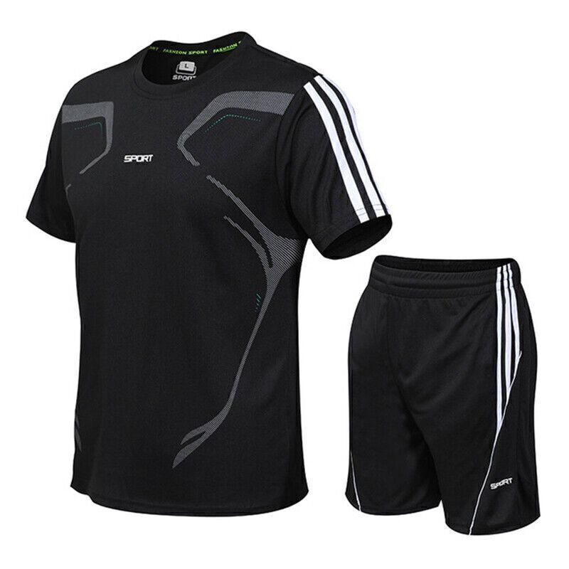 Neu Herren Trainingsanzuge Kurzarm Jogging Sport Hemd kurze Hose 2-teiliges