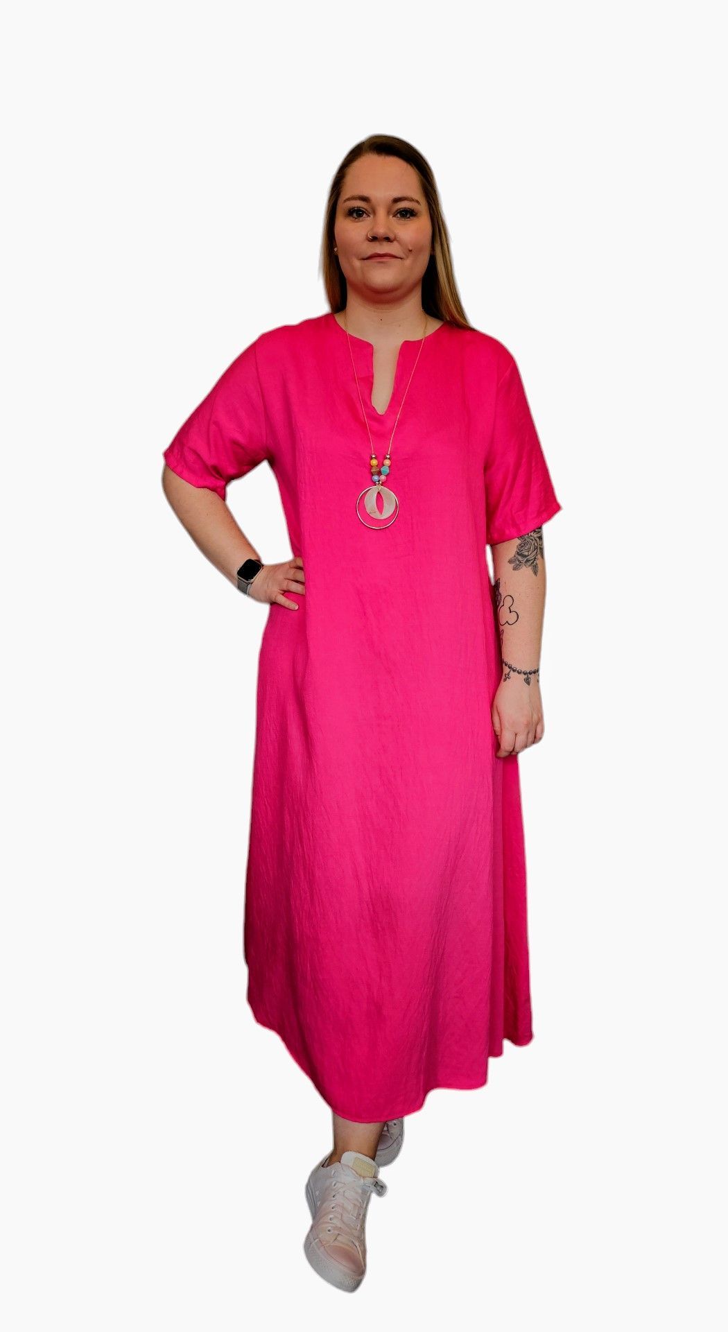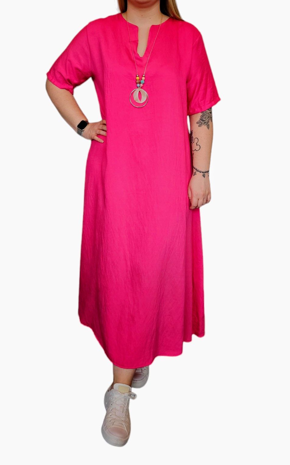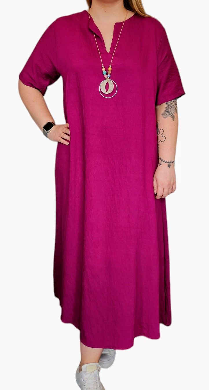 Neu! Italy 38 40 42 Damen Maxikleid Sommerkleid Viskose V-Ausschnitt kurzarm