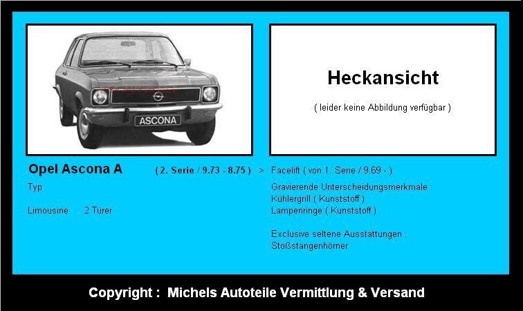 Opel NEU + Kotflügel > Opel Ascona A [ L ] ( 9.69 - 8.73 ) + Original m. Löchern für Zier