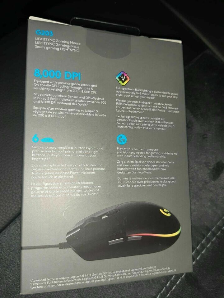 NEU Logitech G203 mit 8000 DPI Laser Gaming Maus für PC und Apple MAC Gamer mit 6 Tasten, und Beleuchtung Professionelle Leistung, 16 Millionen Farben RGB Beleuchtung komplett einstellbar Die Logitech G203 Prodigy ist bis zu achtmal schneller als Standardmäuse und verfügt über fortschrittliche Tastenmechanik.Klassisches Design Das Design der G203 ist inspiriert von den klassischen Linien und der einfachen Bauweise der beliebten Logitech G100S Business-Maus.