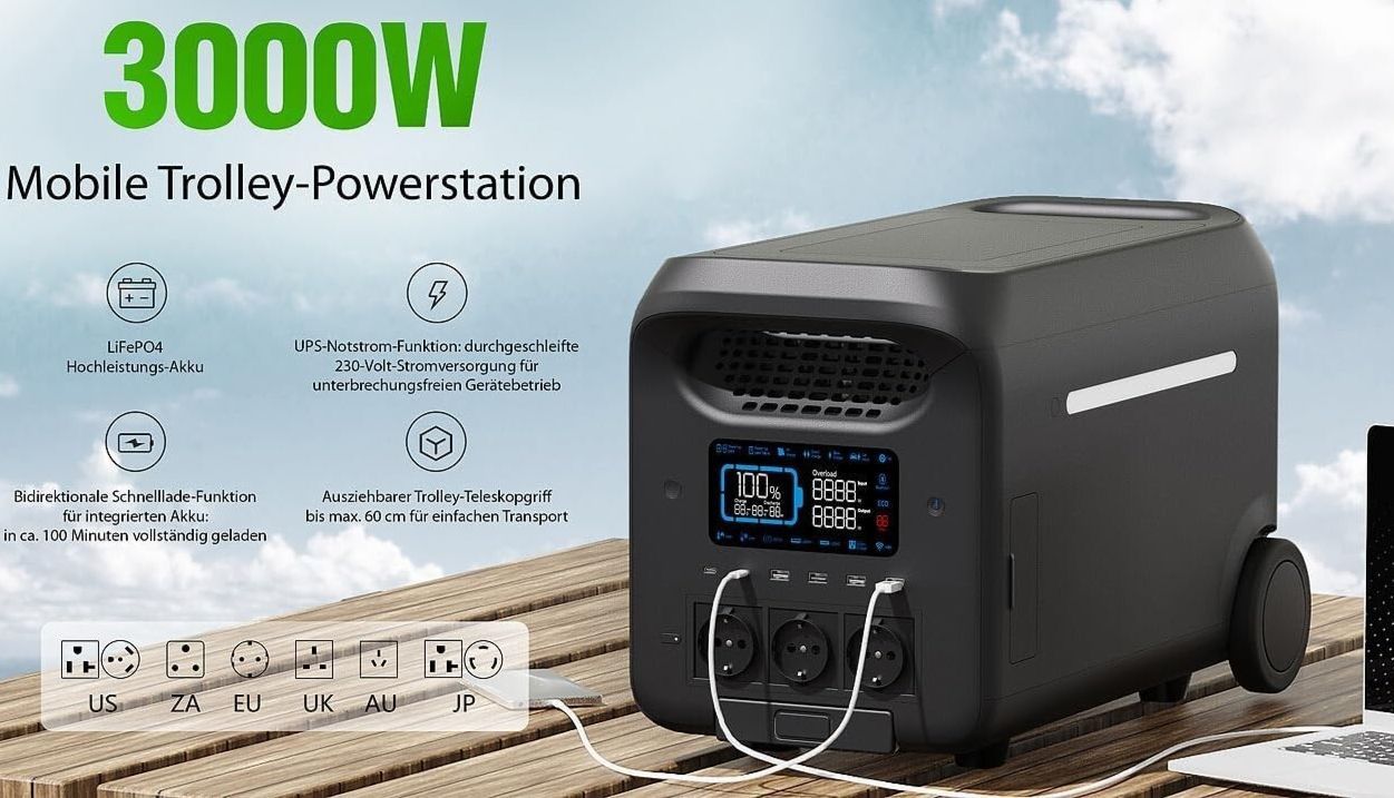 NEU Mobile Outdoor Trolley Powerstation 2,56kWh 50Ah 3000 Watt WLAN für Camping