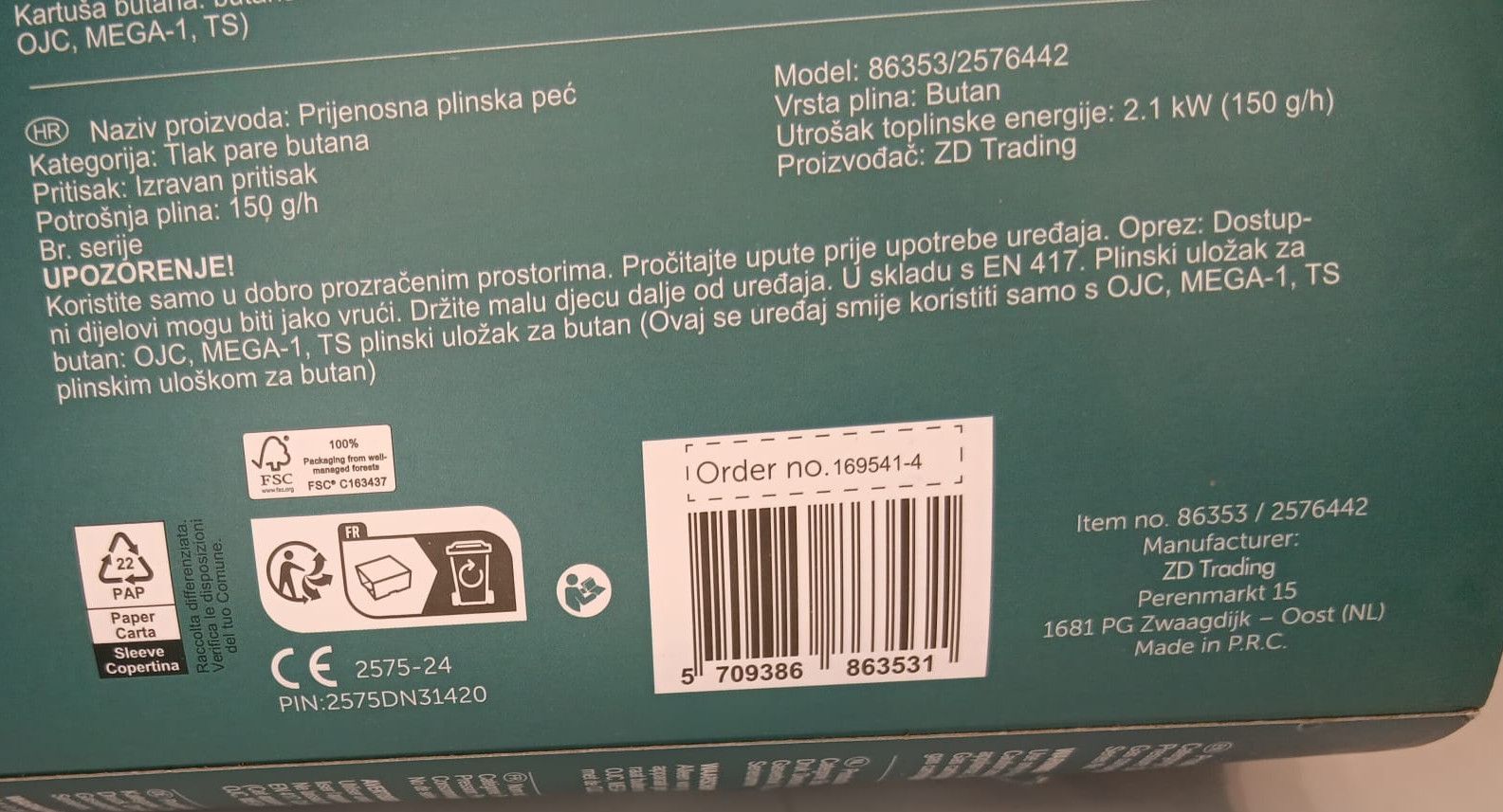 Zu den Herstellungsinformationen zählen die Adresse sowie weitere relevante Angaben zum Hersteller des Produkts.