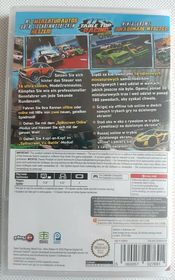 NEU NINTENDO SWITCH SPIEL TR TABLE TOP RACING Nitro Edition Game Code per Email Game Key für den Download des Spiel im Nintendo Eshop. Dieser wird nach Kauf und Bezahlung innerhalb 24h per Ebaynachricht als Foto verschickt. Kein Versand der Hülle oder Karte, keine Softwarekarte erforderlich.