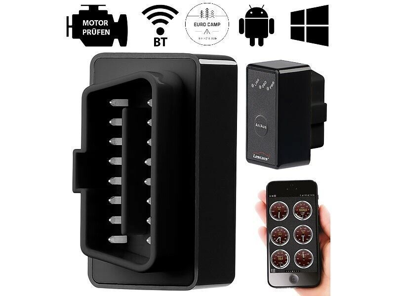 NEU OBD-2-Adapter Bluetooth Diagnosegerät Motor Elektronik für Nissan Mitsubishi EURO Camp - Food & Equip präsentiert: NEU - ideal für jedes Auto mit Benzin ab 2001 und Diesel ab 2004 mit OBD2 Anschluß Alle Daten, Status, Spritverbrauch des Fahrzeugs jederzeit im Blick ganz einfach per Android Smartphone, Tablet, PC, Laptop oder Notebook.