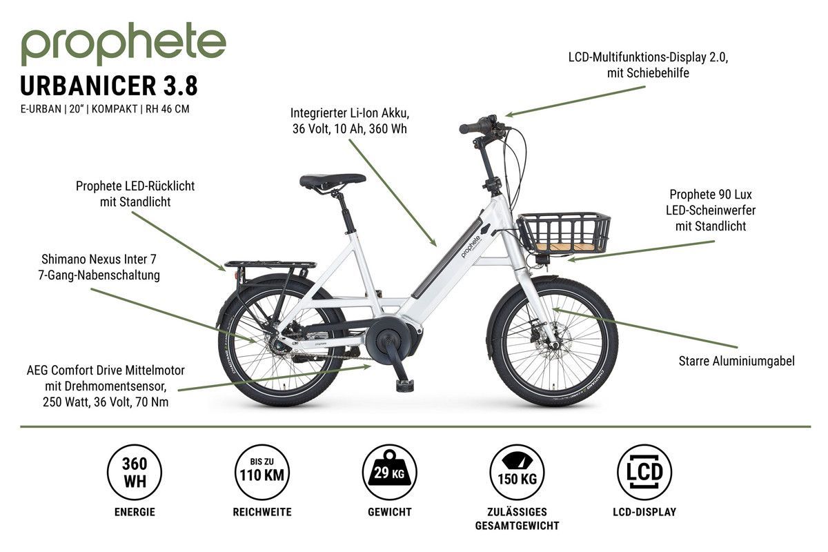 Prophete NEU Prophete Elektro Kompakt Fahrrad Urbanicer 3.8 AEG 20 Zoll 7-Gang Nexus Nabe 2025