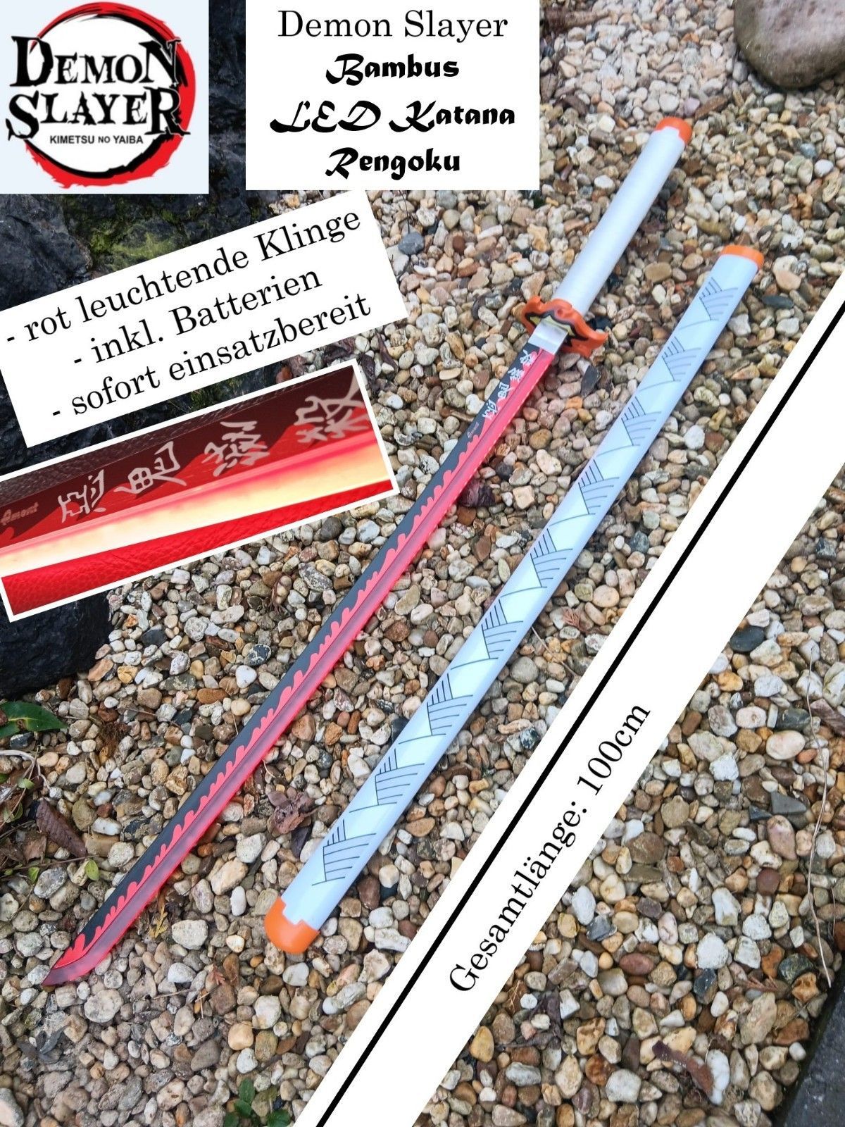 NEU Rengoku Bambus LED Katana Lichtschwert 100cm für Cosplay Anime Manga Fans
