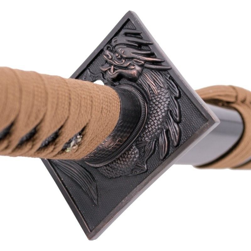 • Katana Samurai Schwert Klinge aus 1045 Kohlenstoffstahl, holzfarbener Scheide