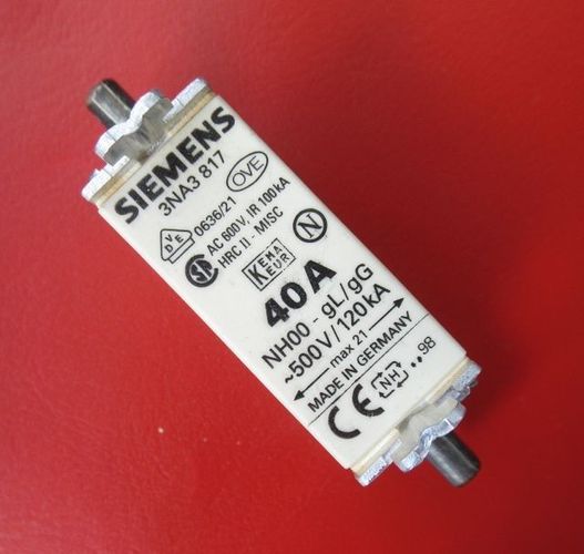 N E U NH-Sicherungseinsatz 40A SIEMENS 3NA3 817 NH 00 gL gG 500 V 12 kA Privatverkauf - keine Rückgabe, kein Umtausch, keine Produkthaftung, kein Widerrufsrecht!