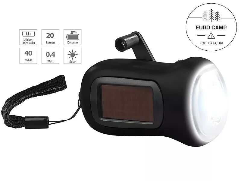 NEU Solar Akku Kurbel LED Lampe Taschenlampe für Notfall Stromausfall Prepper