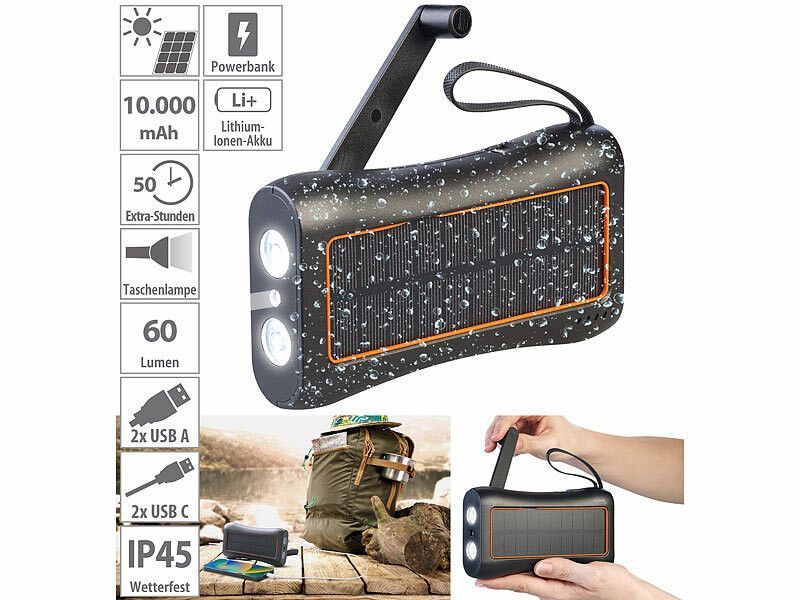 NEU Solar Kurbel Dynamo Powerbank 10Ah 37Wh für Outdoor Camping Wandern Zelten