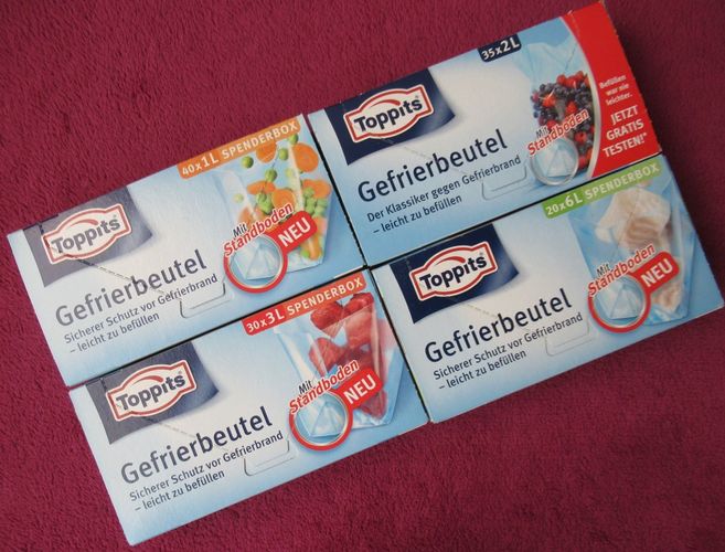 N E U Gefrierbeutel mit Standboden Toppits 125 Stück: 40x 1 L 35x 2 L 30x 3 L 20x 6 L aus reißfester 3-Schicht-Spezialfolie in Spenderbox Privatverkauf - keine Rücknahme - keine Garantie - keine Gewährleistung. Unversicherter Versand auf Risiko des Käufers - versicherter Versand auf Nachfrage - vor