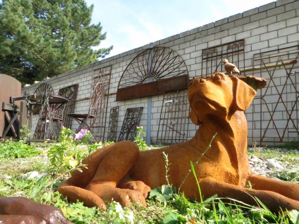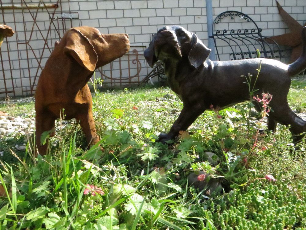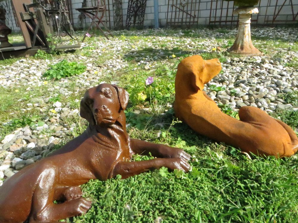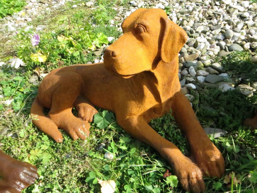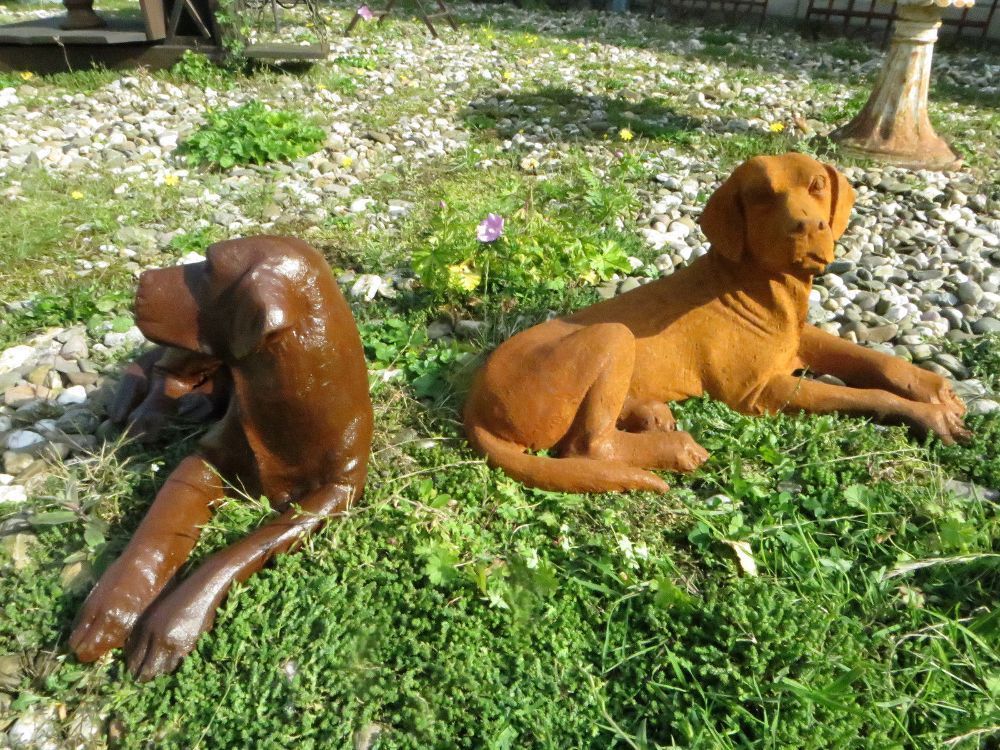 Neu Welpen, liegend, Jagdhund, Labrador, Golden Retriever, Skulptur, Gusseisen