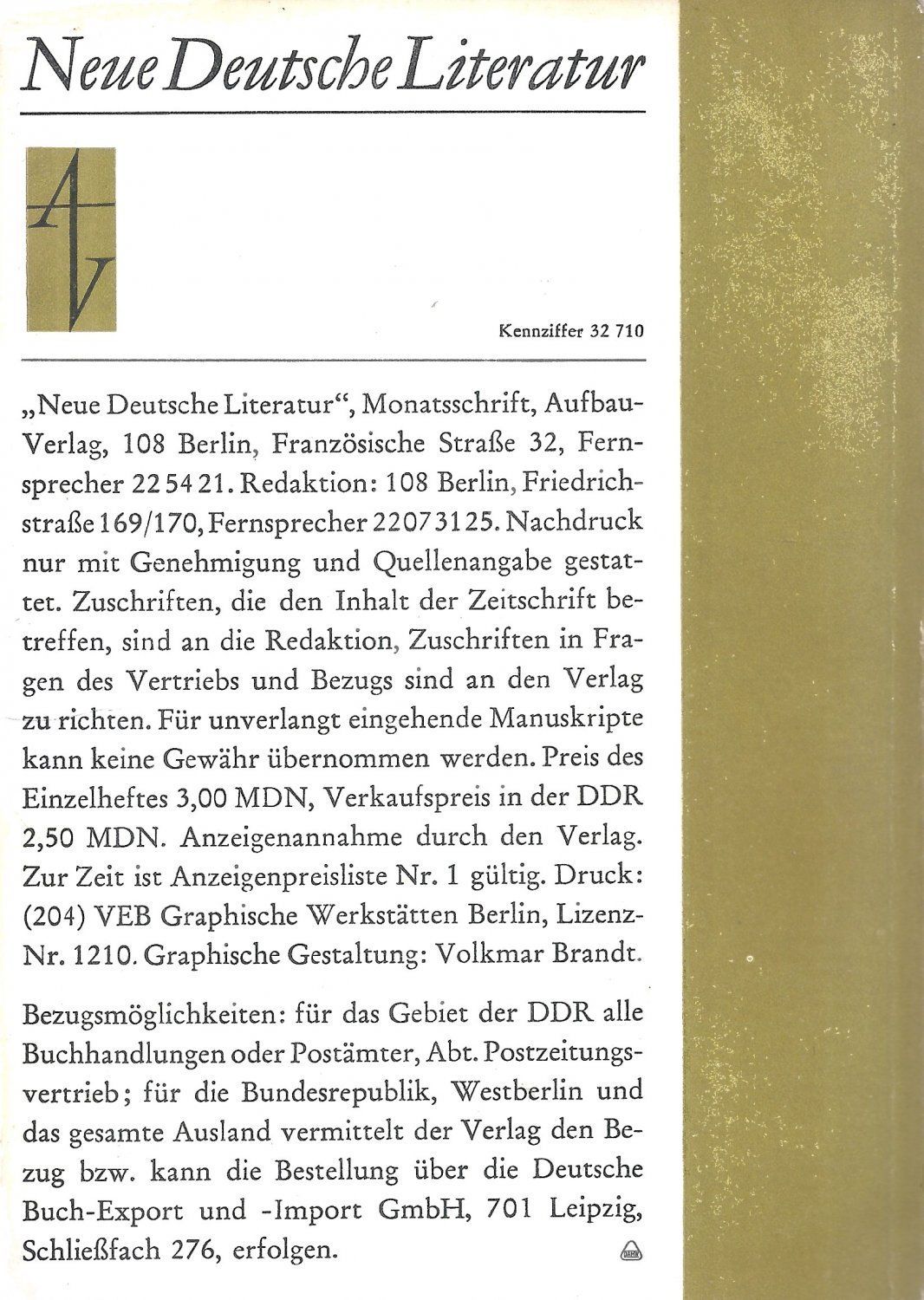 Titel: Neue Deutsche Literatur ndl 1-1967