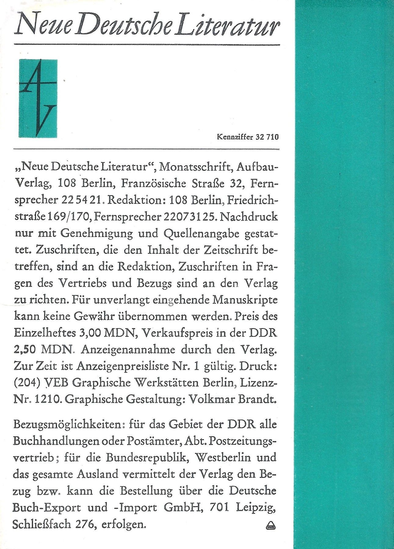 Titel: Neue Deutsche Literatur ndl 6-1967