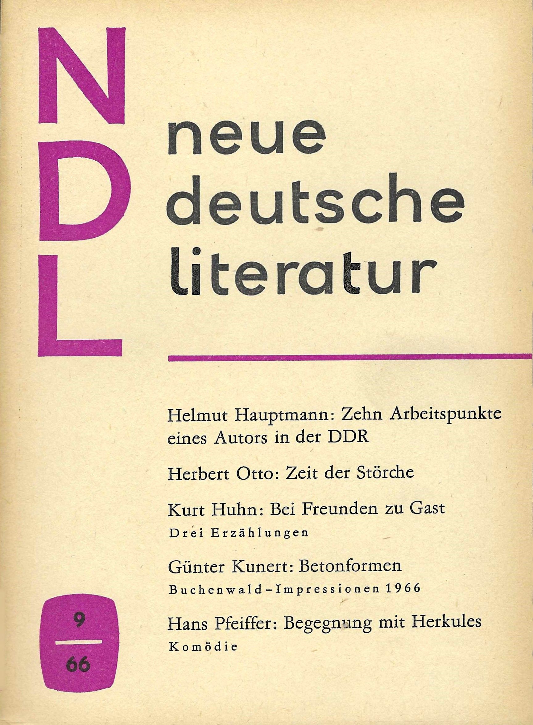 Neue Deutsche Literatur ndl 9-1966 Aufbau Verlag